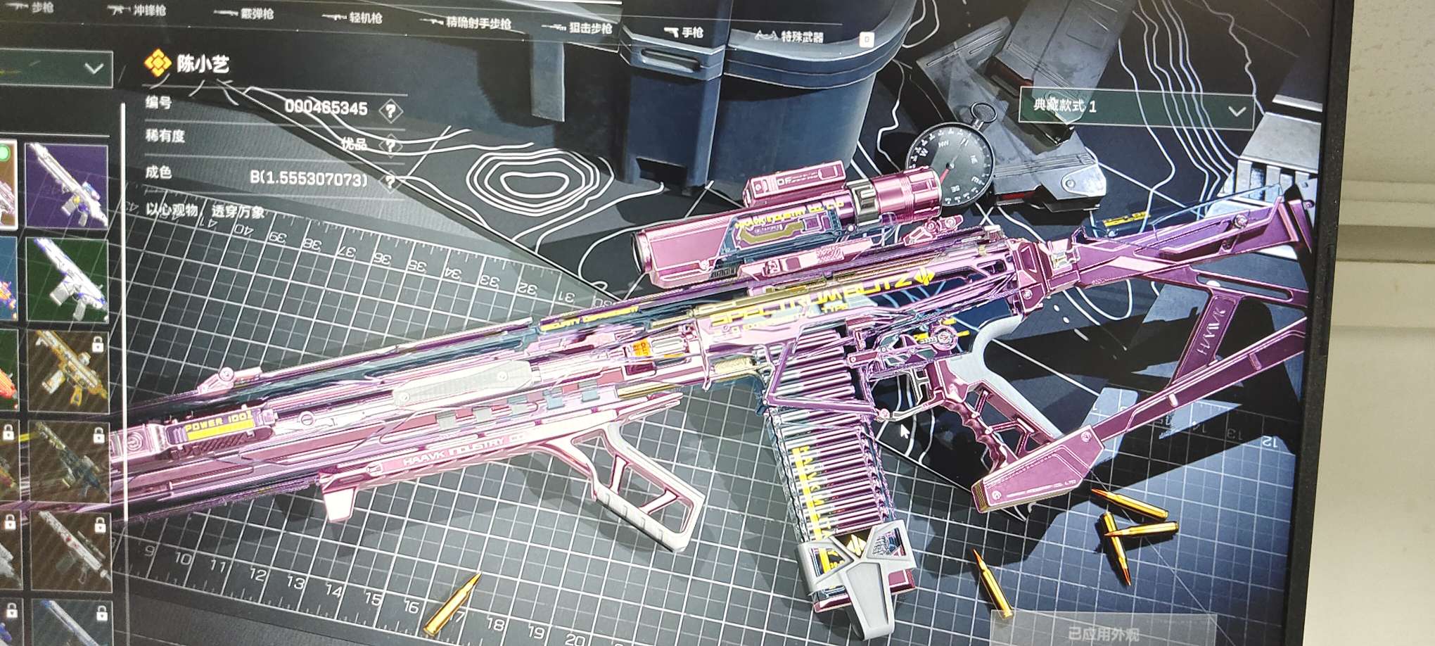 有三个奖杯,勇敢者已做,还有好多限定大红,玄武机甲等等,一把准优a金属粉m7,优c低磨损蜜桃粉mp7