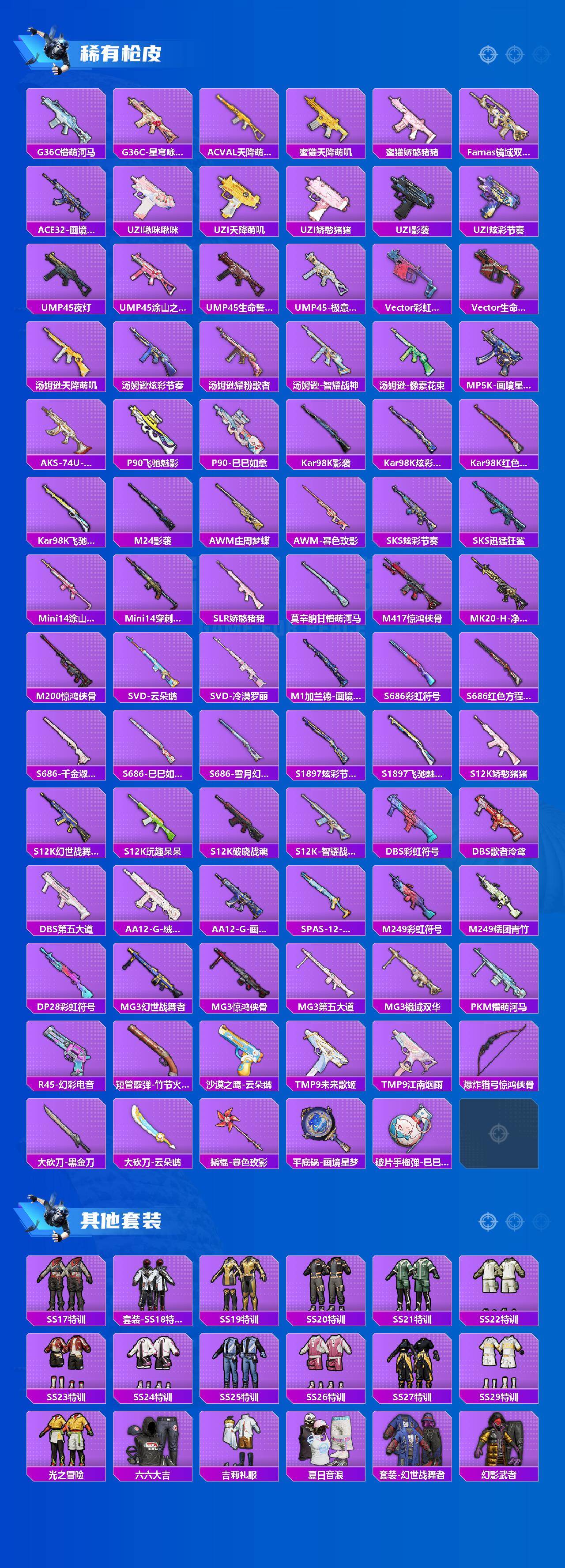 苹果【枪皮号 M416-墨龙九天(三级)/AUG-许七安(七级)/套装-都市猎人/套装-深海小丑鱼/套装-粉红小猪/宝马X6 M(曼岛绿)/百万伏特背包(3级)】 手Q-5粉装-6特效枪-1载具-4粉色飞行器-63497热力值-13王牌印记-152套装-218枪皮