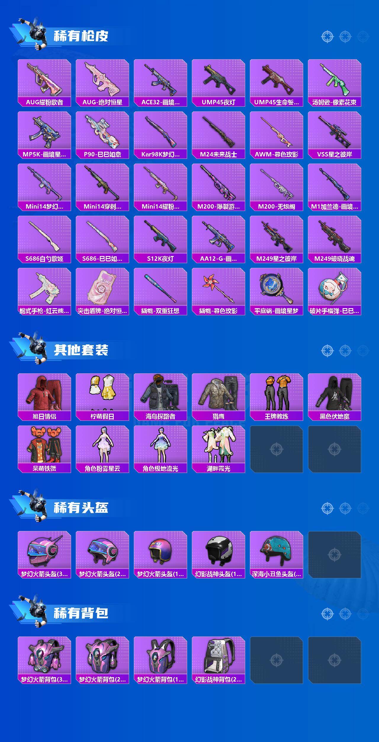 【粉色套装】:角色-绝对恒星,粉装-梦幻火箭,角色-熔岩统帅,角色-紫钛骑兵,角色-狂魅哈莉,角色