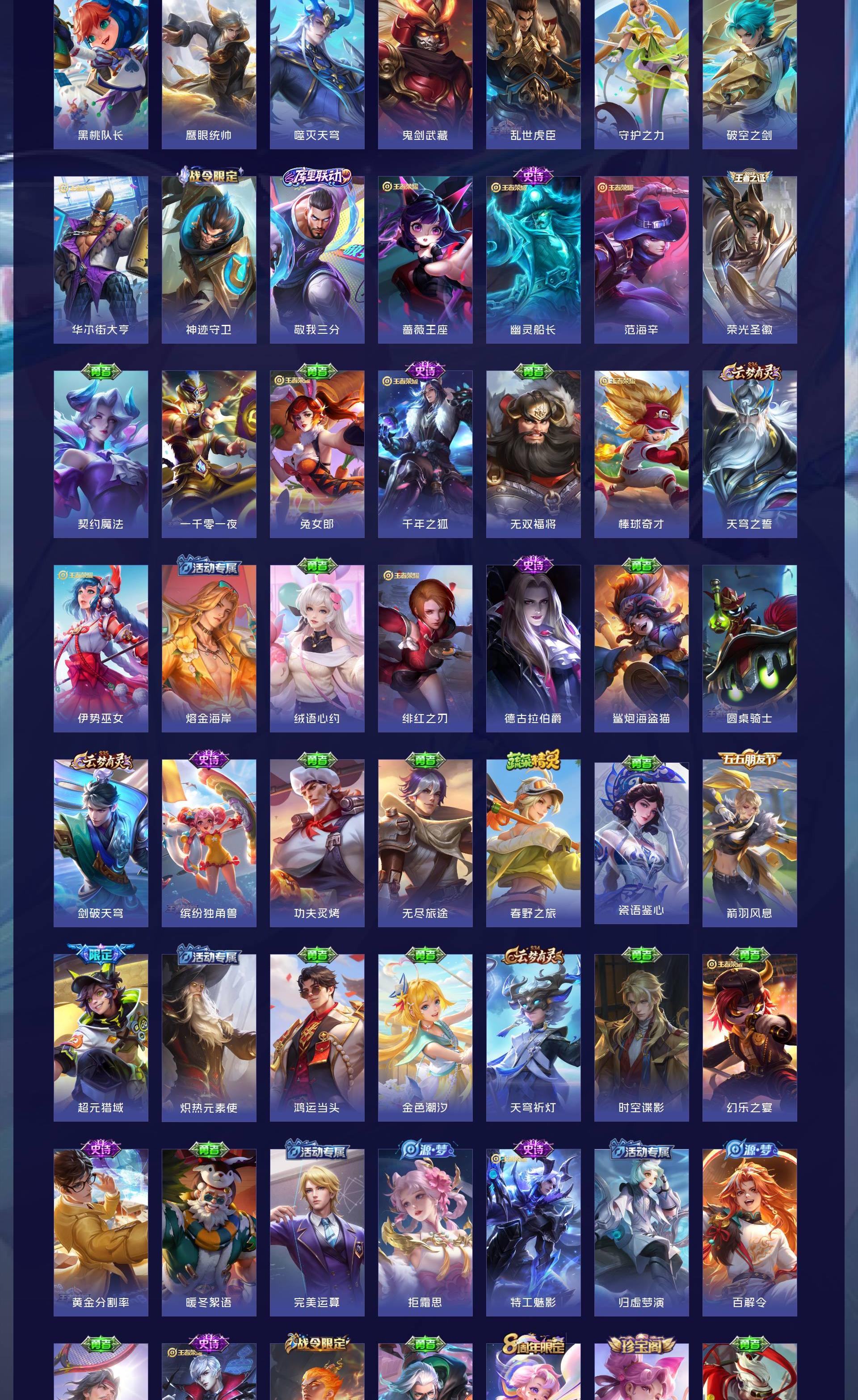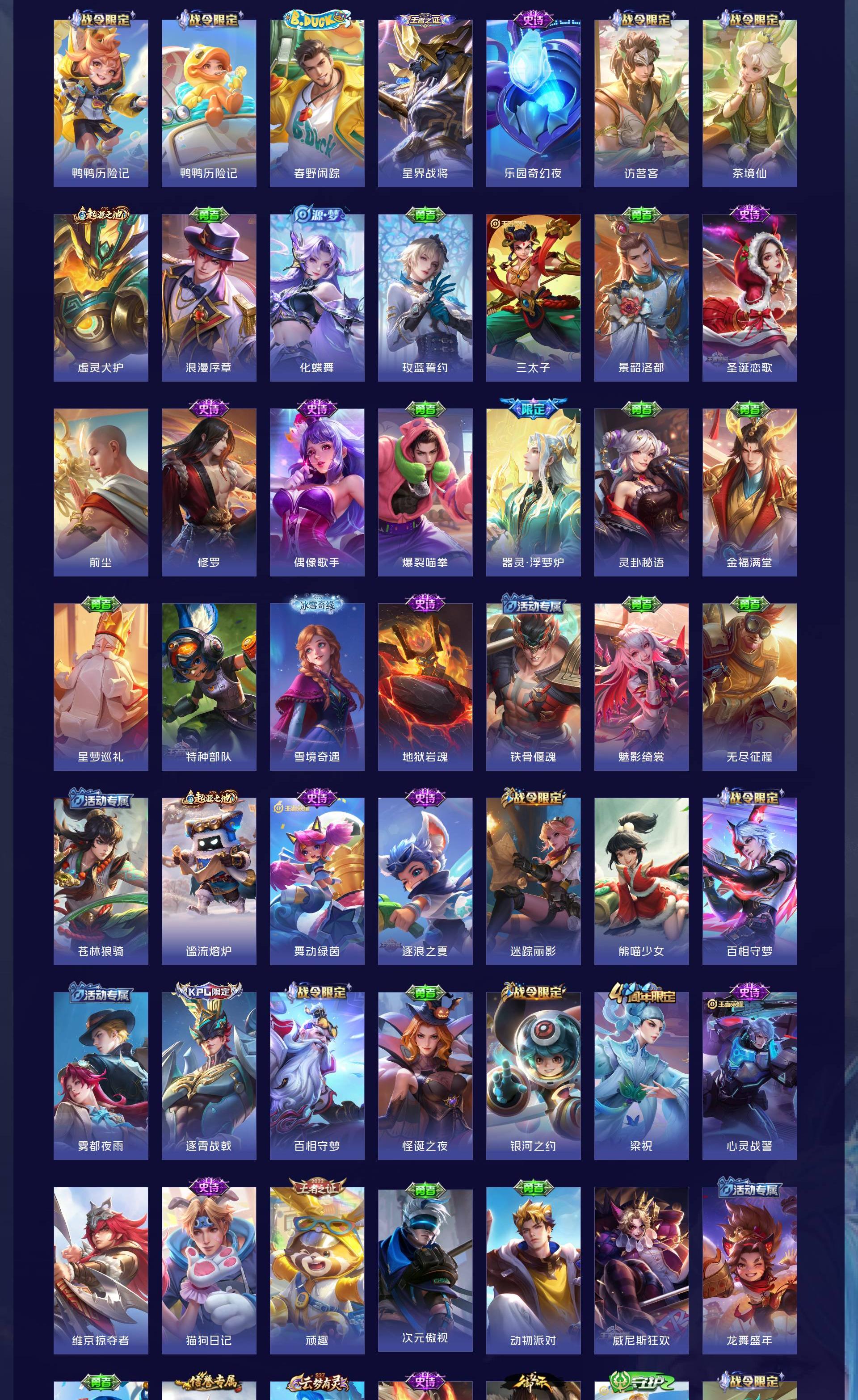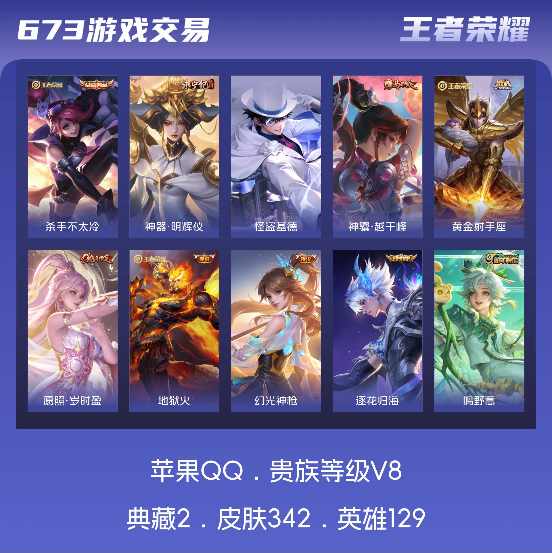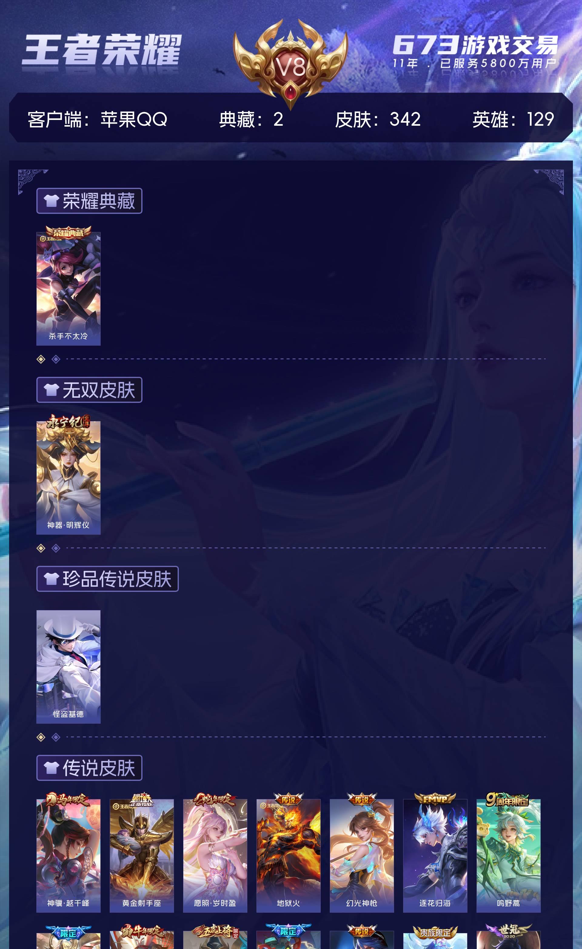 V8 皮肤342 英雄129 无双王者 荣耀典藏2 无双皮肤1 珍品传说1 传说23 其他皮肤321
