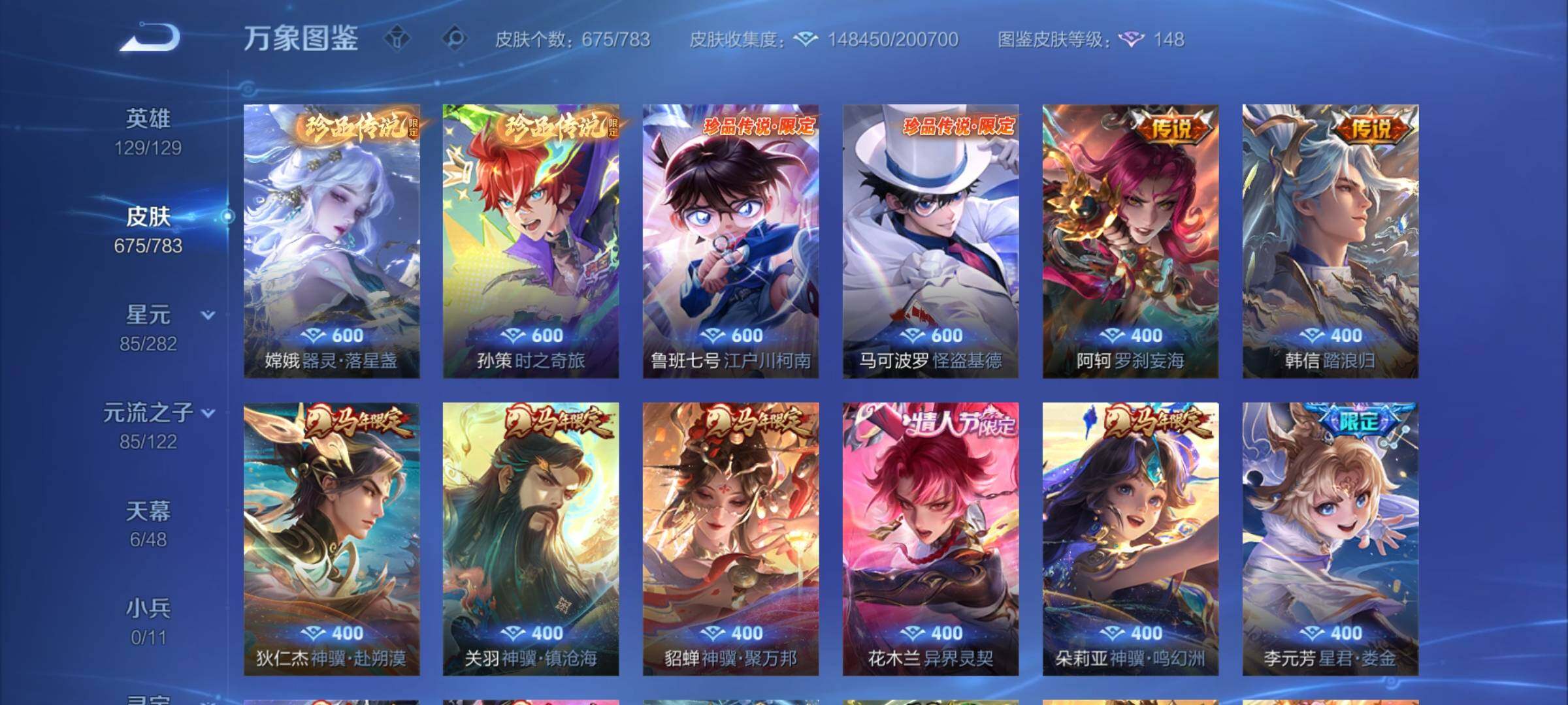 【店铺主推无双v10·7典藏·1珍品无双·11无双·满珍品·8星传说·108传说·5精品天幕·10W流光积分·全套慕夏·神骥仙使装扮·越千峰灵宝·花合斗·离恨烟·岁雨灵司·苍灵仙君·游龙堇华·破晓神光·天骥开鸿天幕·满马年限定·满兔年限定·满龙年限定·满蛇年限定·星君娄金·夜礼服假面·永恒水手月亮·可二次】YXw18636-安卓Q-129英雄-675皮肤-22王者印记