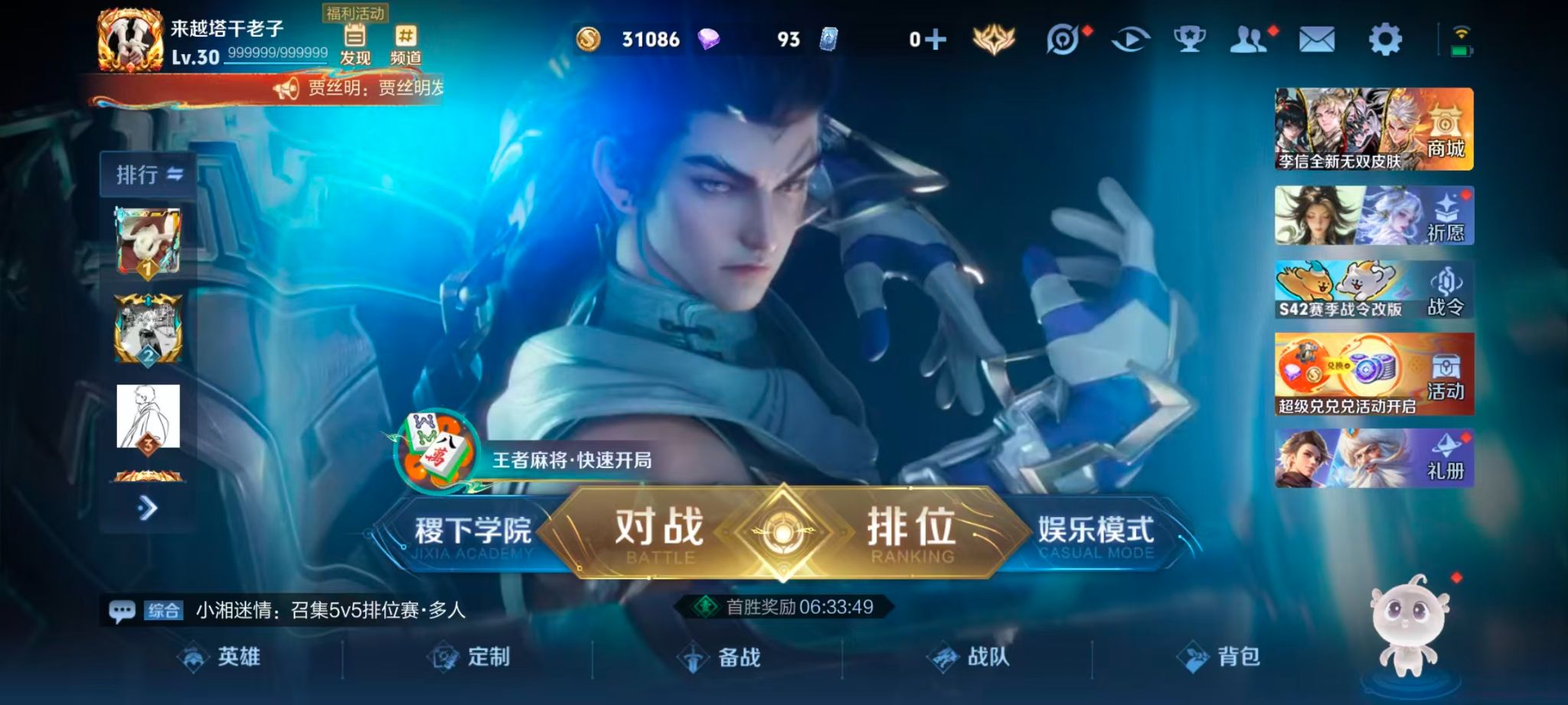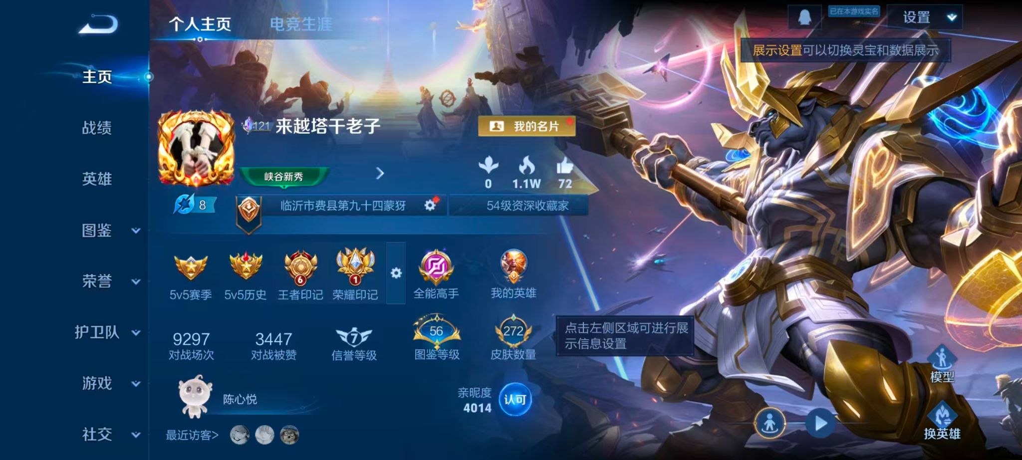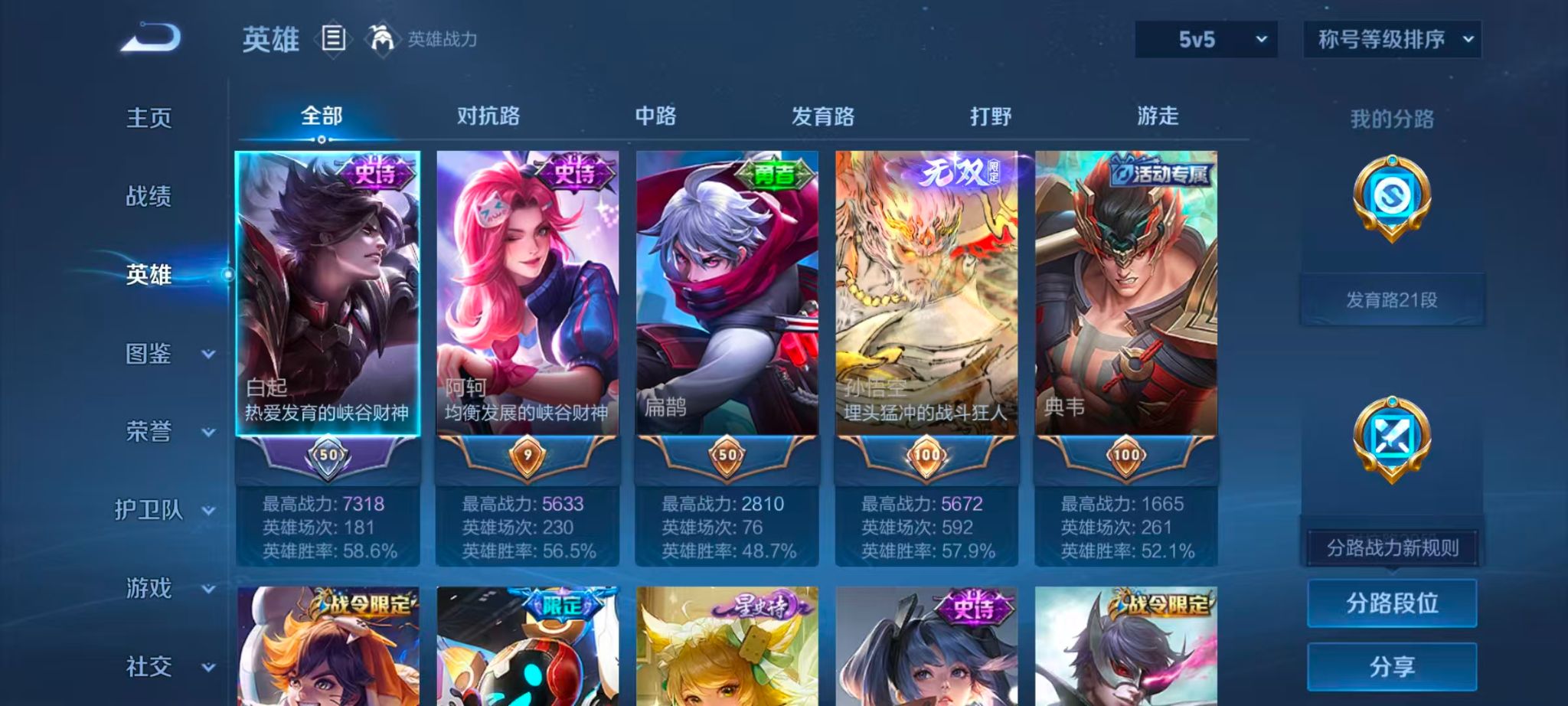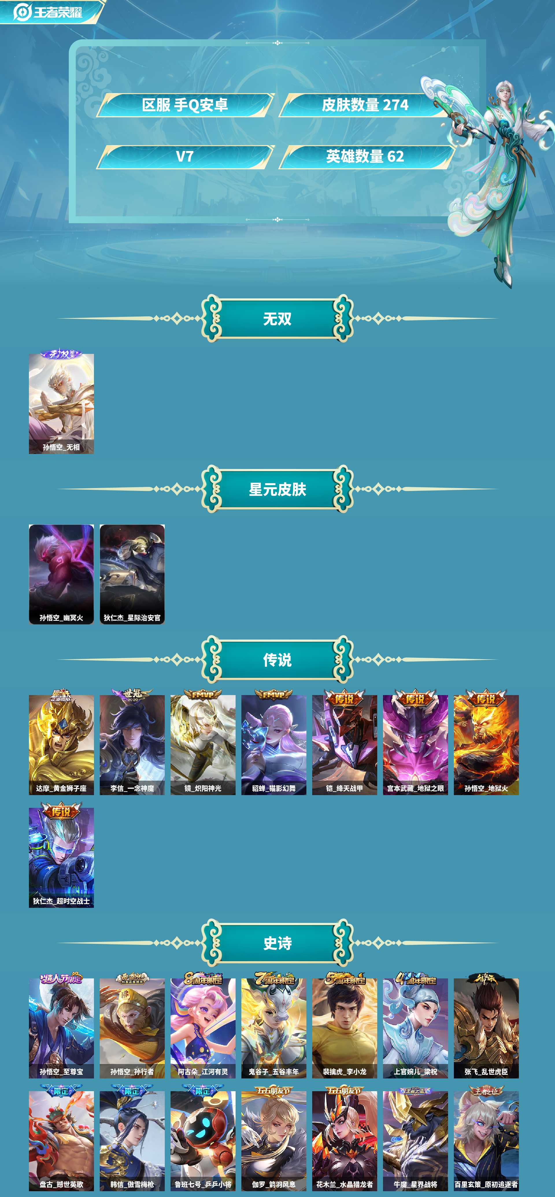 线条小兵!精品打野猴子!皮肤数量272印记总数7V7最强王者
