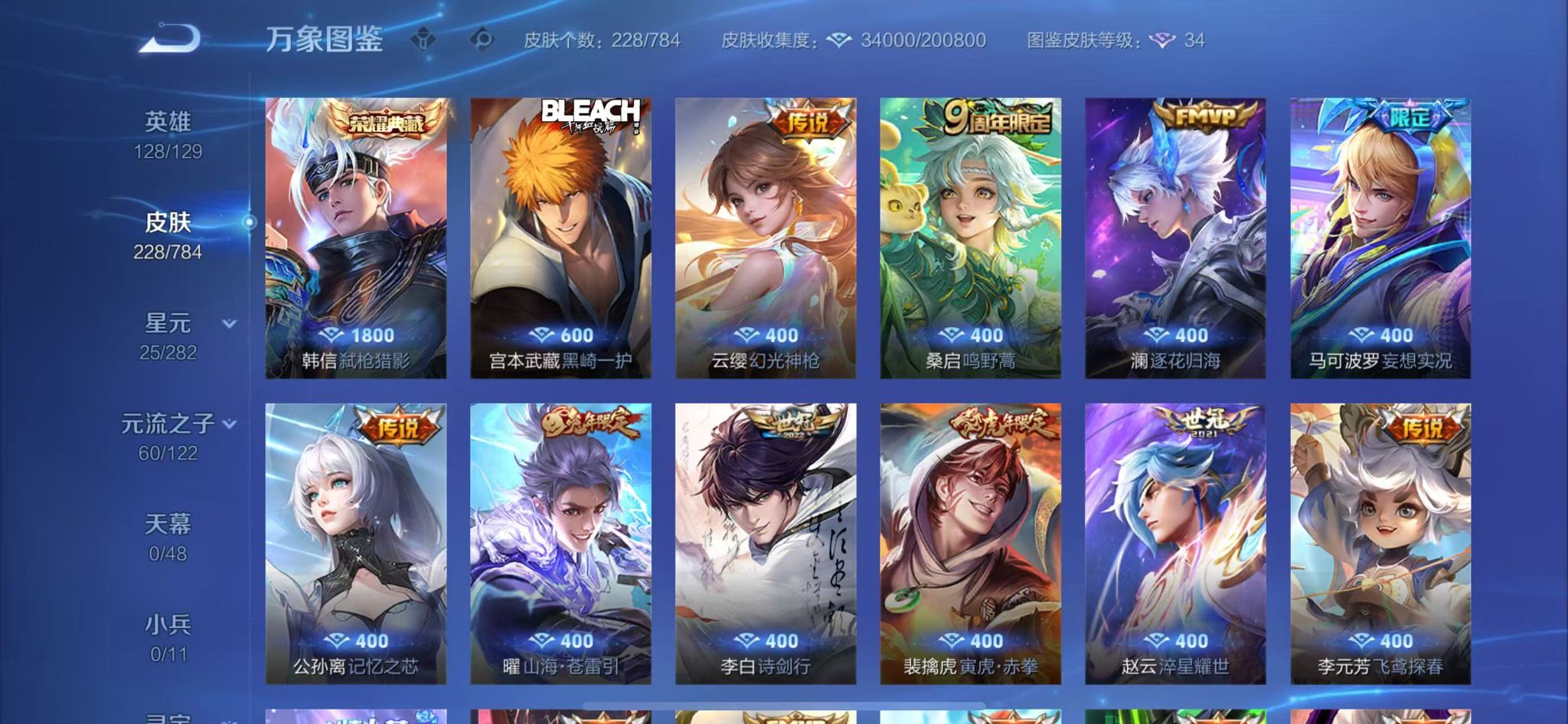 男神带妹号-小国兰陵王-万战金标镜 万战宫本阿珂诸葛万战曜 极品数据号-1典藏韩信弑枪猎影-珍品限定-宫本武藏黑崎一护-228皮肤李元芳飞鸢探春,梦奇胖达荣荣,马可波罗妄想实况,铠绛天战甲,云缨幻光神枪,桑启鸣野蒿,孙尚香末日机甲,澜逐花归海,兰陵王默契交锋,铠曙光守护者,裴擒虎寅虎赤拳,赵云淬星耀世,李白诗剑行,公孙离记忆之芯,宫本武藏地狱之眼,镜炽阳神光,曜山海苍雷引 至尊宝