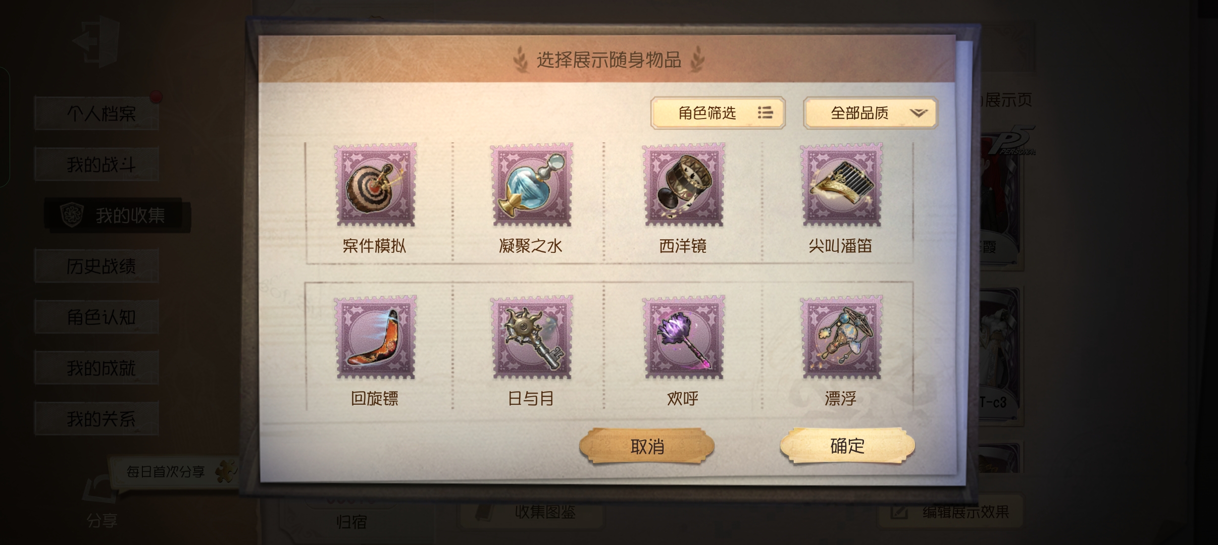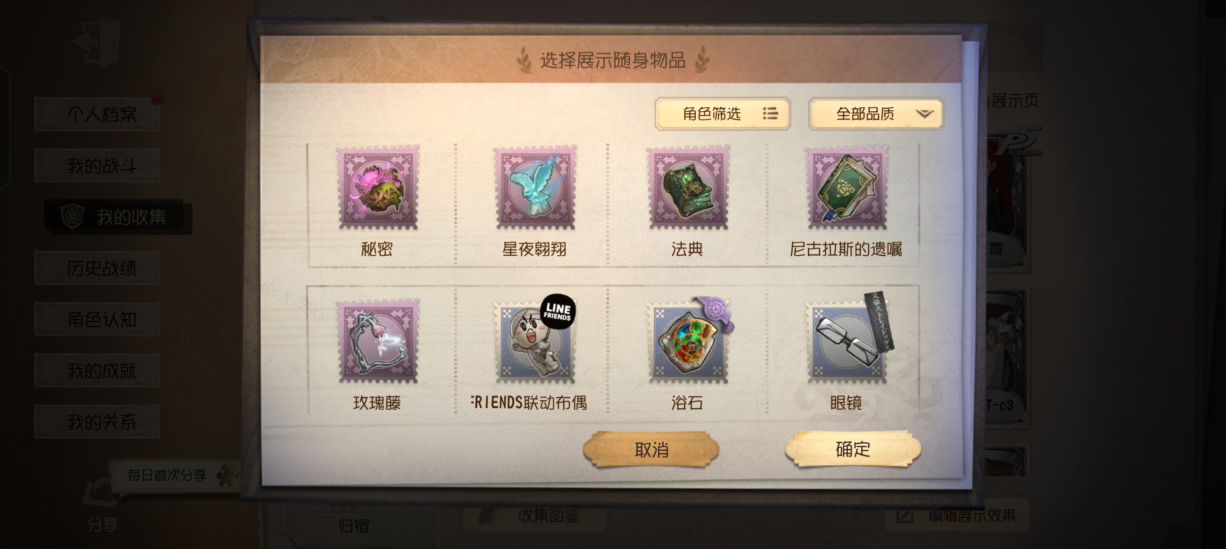 随身物品: