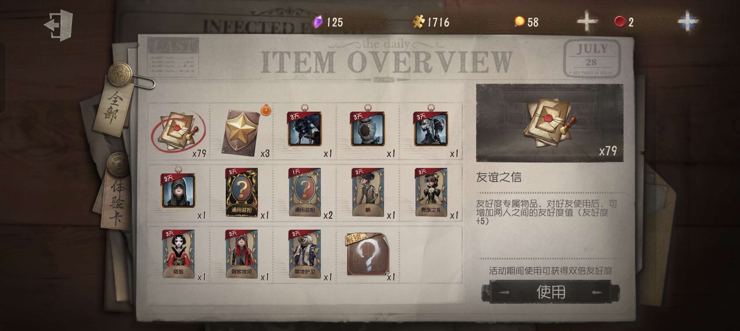 随身物品数量: