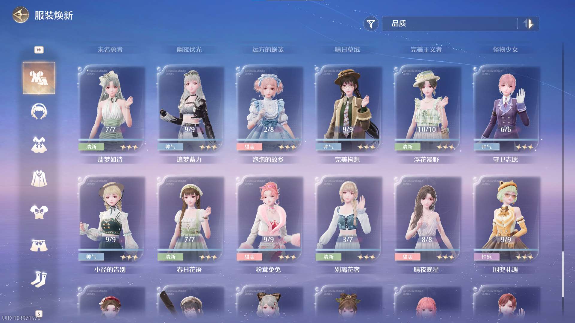 无限暖暖成品号,多套限定五星,氪条700+,资源充足 86件五星