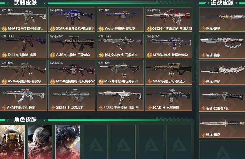 【近战皮肤】:近战-暗星,近战-信条,近战-怜悯,近战-处刑者1级,近战-黑鹰