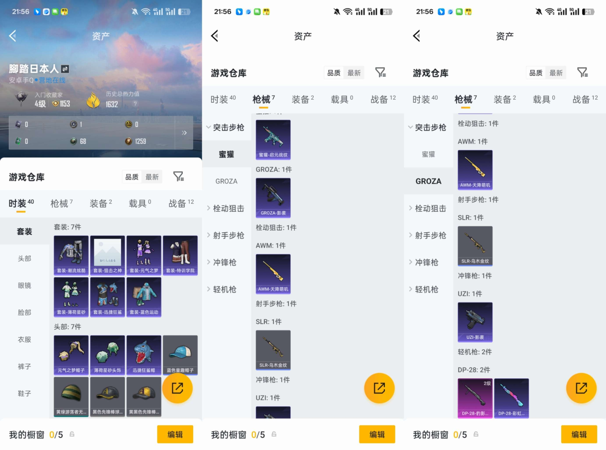 -1特效枪-1632热力值-7套装-7枪皮【稀有武器皮肤】: GROZA-影袭 AWM-天降萌叽 UZI-影袭 DP-28-彩虹符号【其他套装】: 迅捷狂鲨 潮流炫酷 特训学院 蓝色运动【优质降落伞】: 异瞳寒姬降落伞 普通降落伞