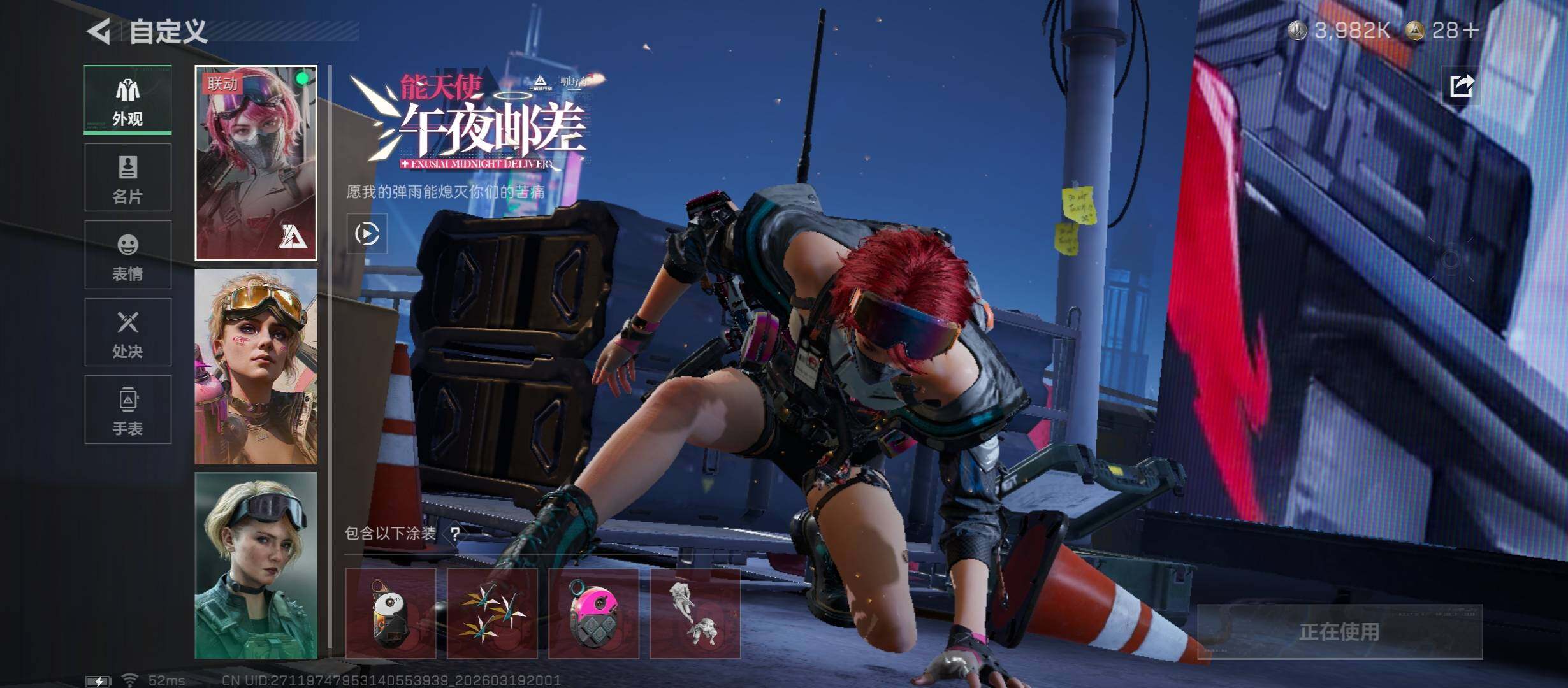 【干员外观】:红狼-蚀金玫瑰,露娜-黑·天际线,蛊-能天使午夜邮差,蜂医-送葬人·无题密令,无名-夜鹰,深蓝-不破誓约,红狼-电锯惊魂,露娜-金牌射手,乌鲁鲁-荒原猎手,蛊-不羁人生
