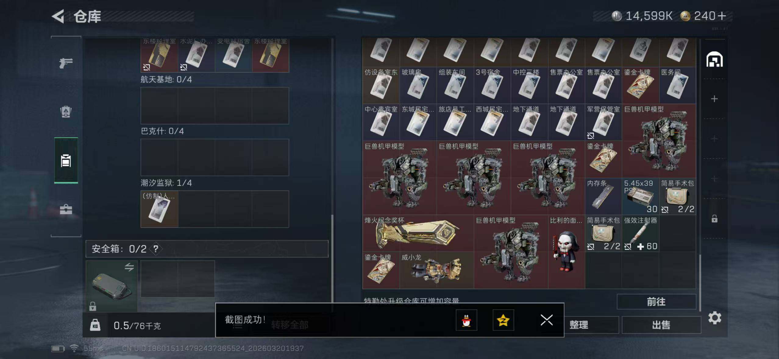【SJ1482】107m总资产-14599k哈夫币-60烽火等级-白银-1战场