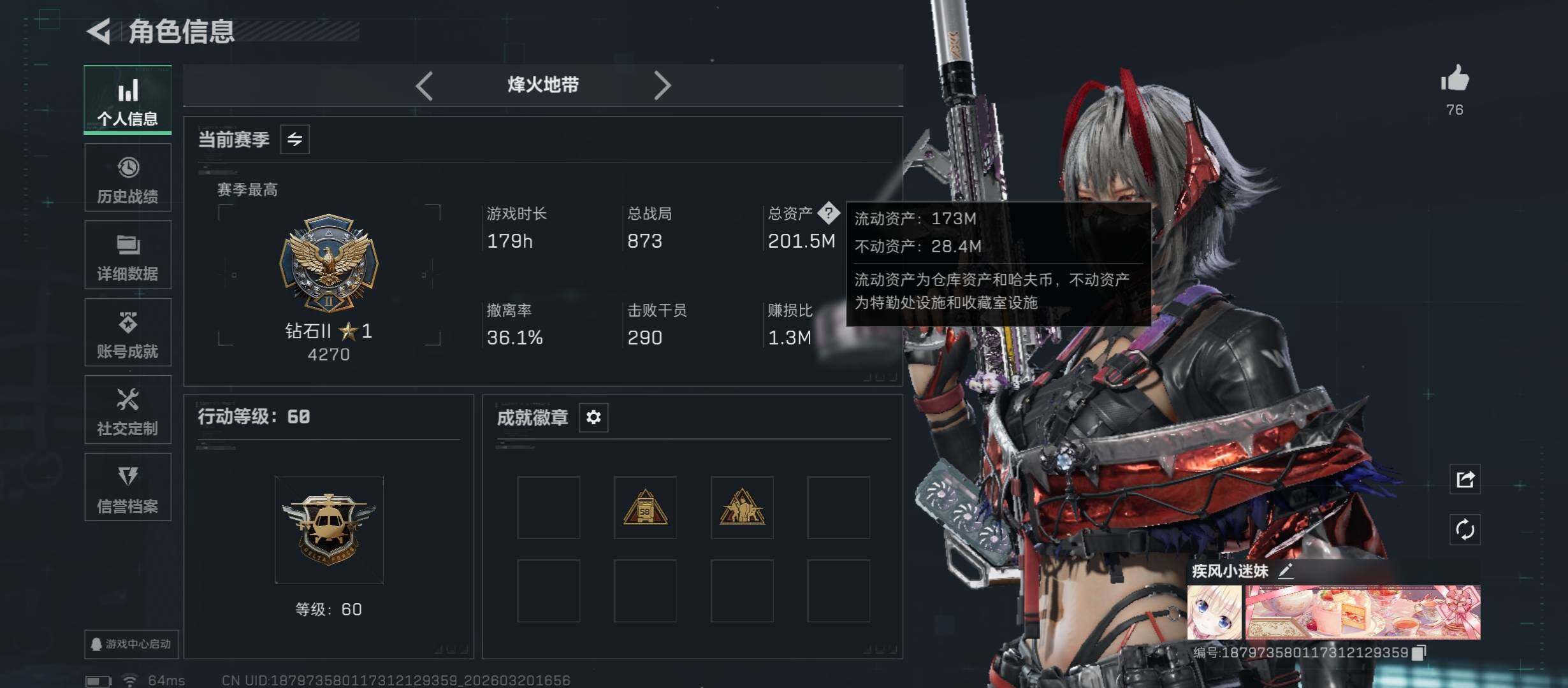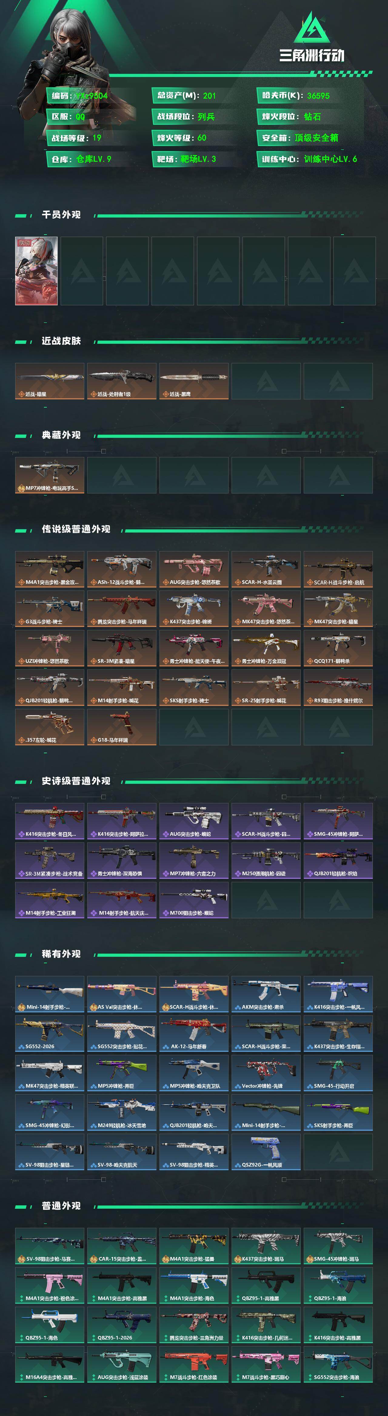 【赛季热门皮肤:单红+单刀+单典藏皮肤】【Q区三端互通】【【无二协助处理】】YXz9504-特勤处:仓库9级/靶场3级/训练中心6级-总资产201m-哈夫币3659w-烽火等级:60级
