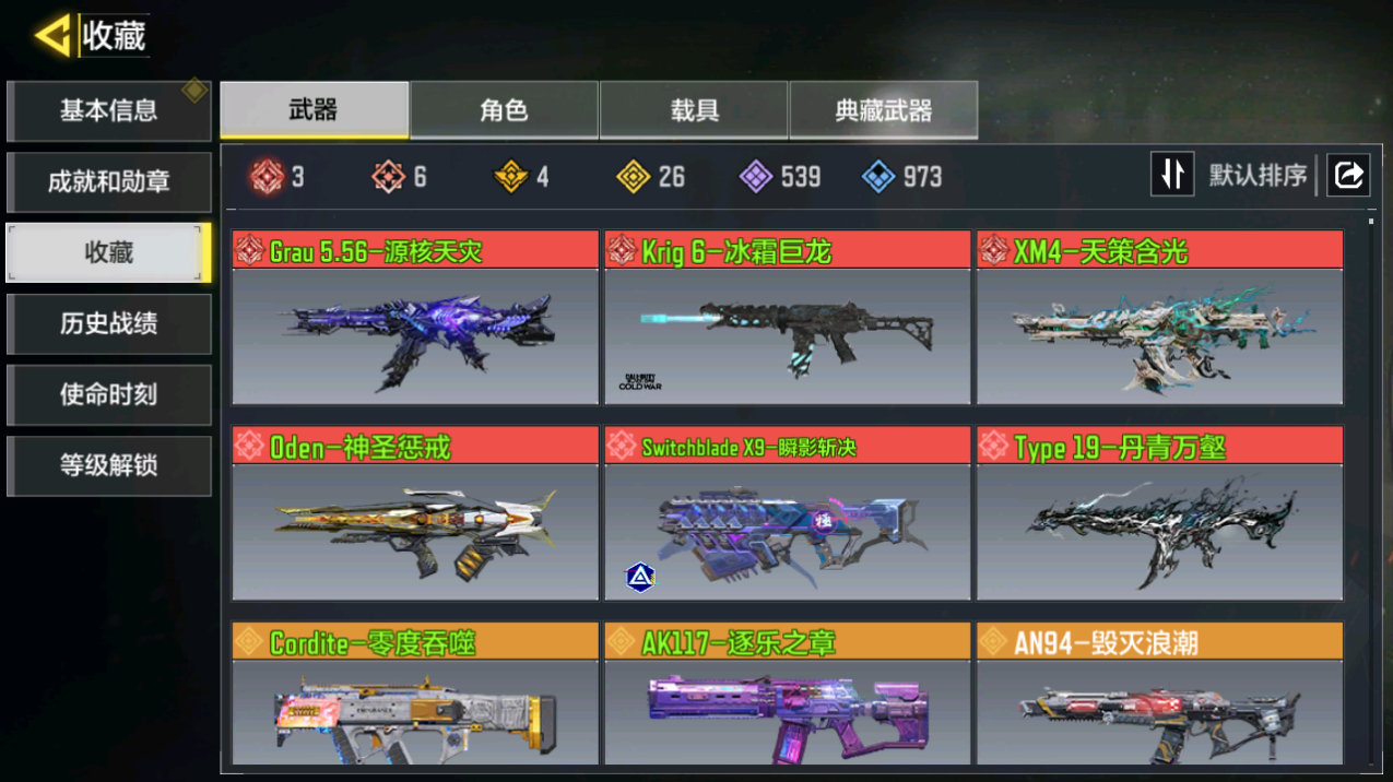 【神话武器】Krig6-冰霜巨龙,Switchblade X9-瞬影斩决,Oden-神圣惩戒,XM4-天策含光,Type19-丹青万壑,Grau5.56-源核天灾,