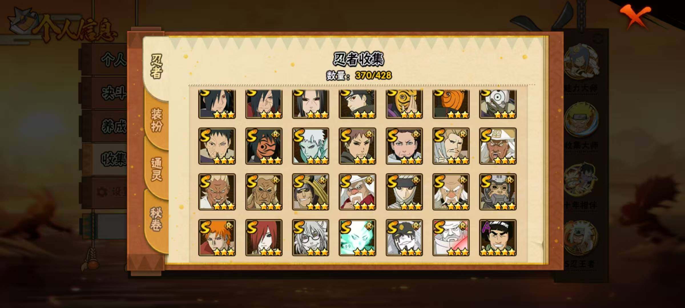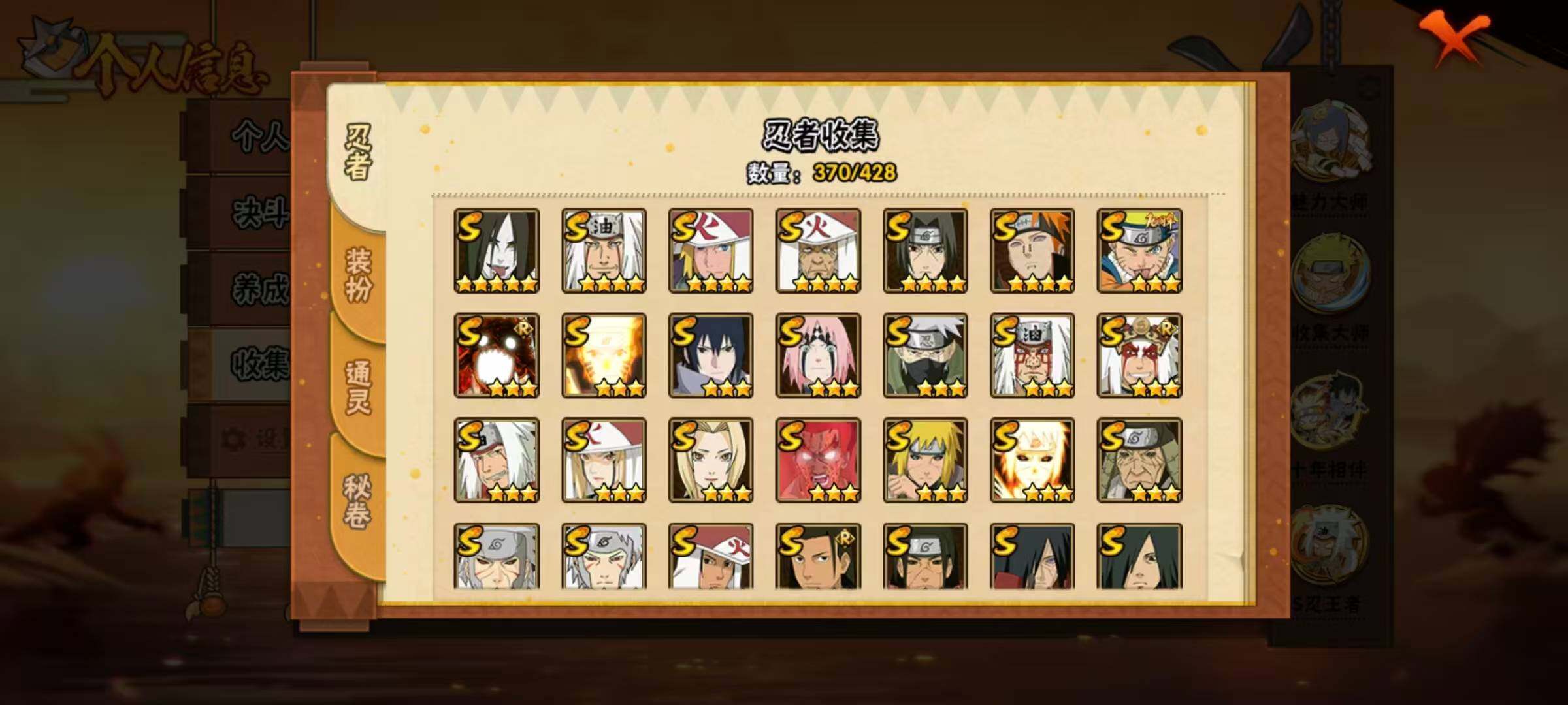 准全s忍,5万金币61高招券,三代风影71片,忍法帖已开