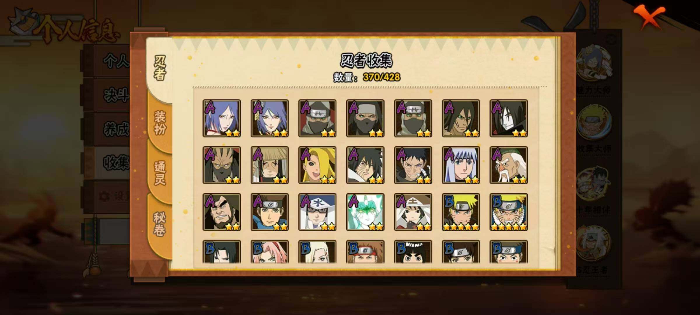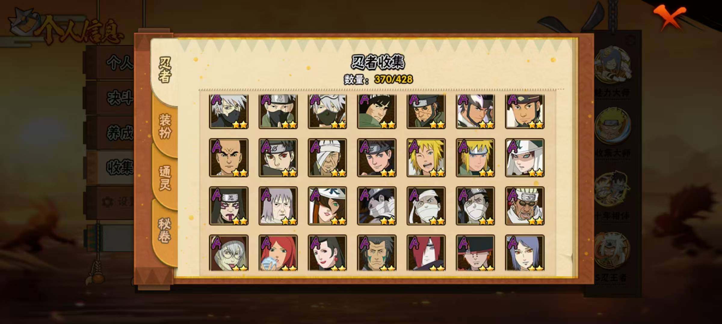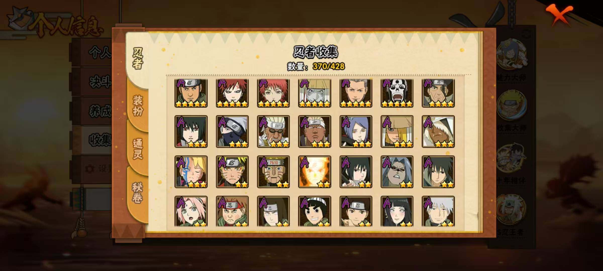 55S级忍者数-75A级忍者数准全s忍,5万金币61高招券,三代风影71片