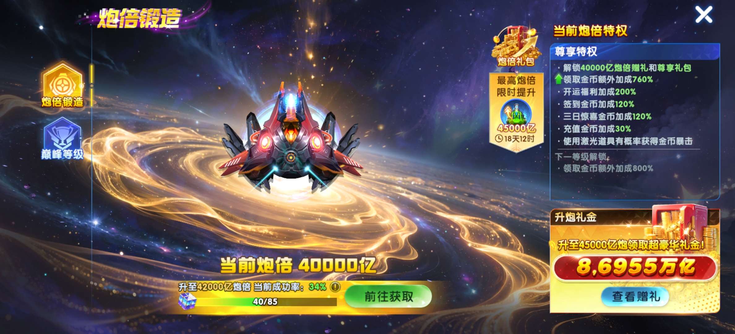 【捕鱼大作战账号】vivo板本,准贵族23,13套装,金币加成1400多,炮台420,纯救济1.9兆 一口价