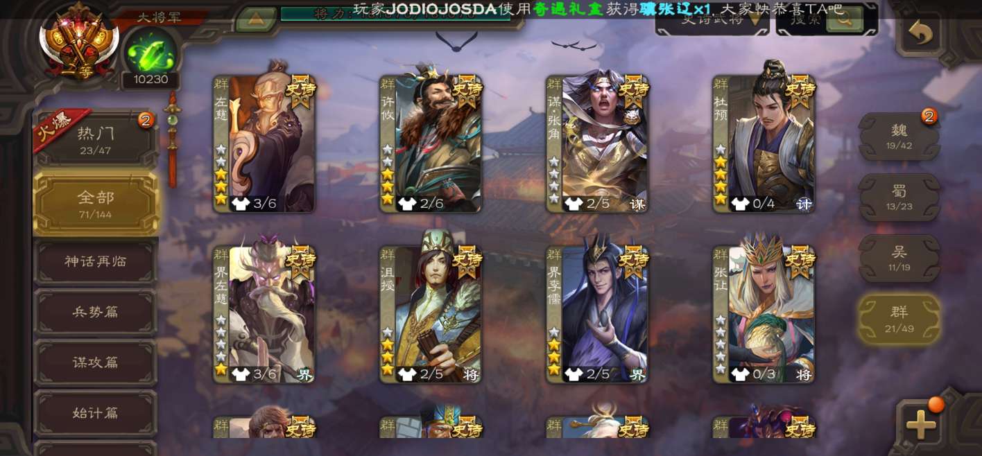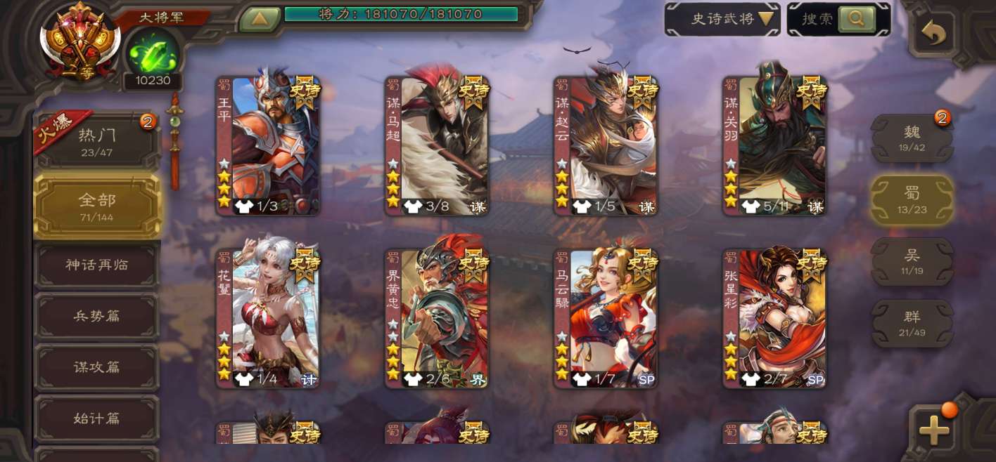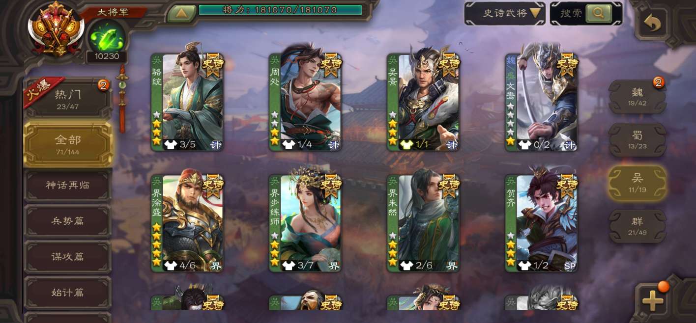 史诗武将数量: