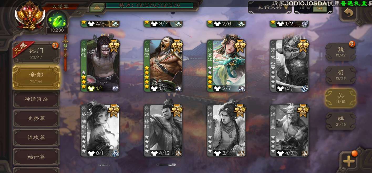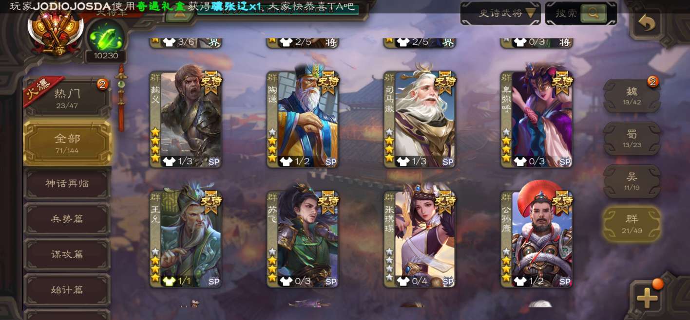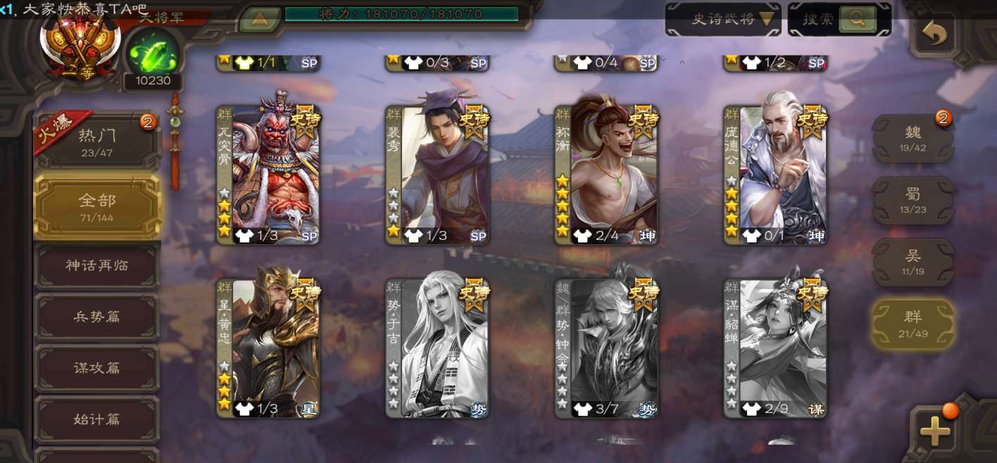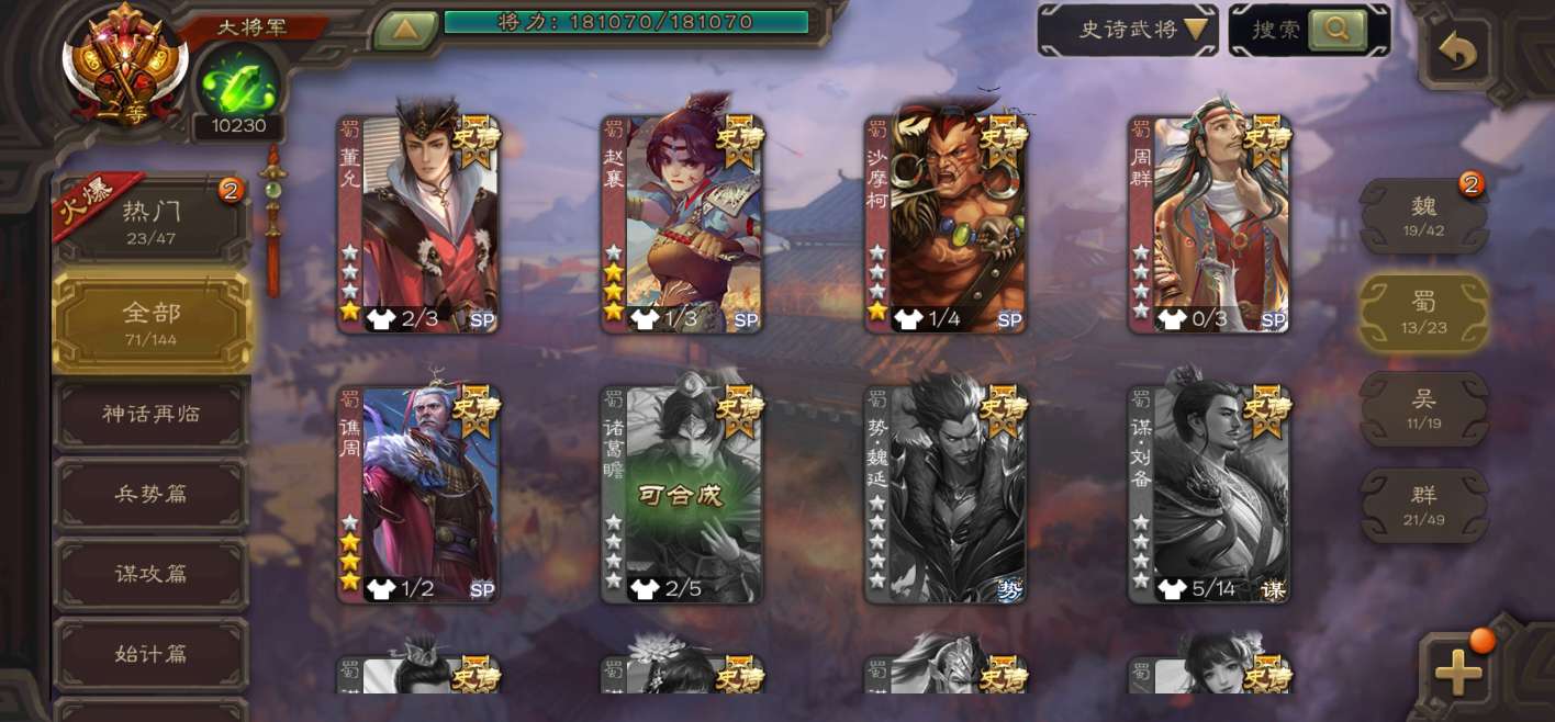 史诗武将数量: