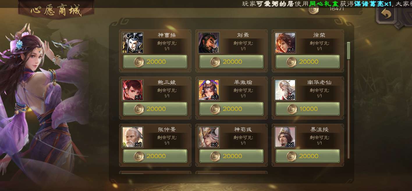 神郭嘉,神甘宁,谋关羽,文鸯等多强力武将