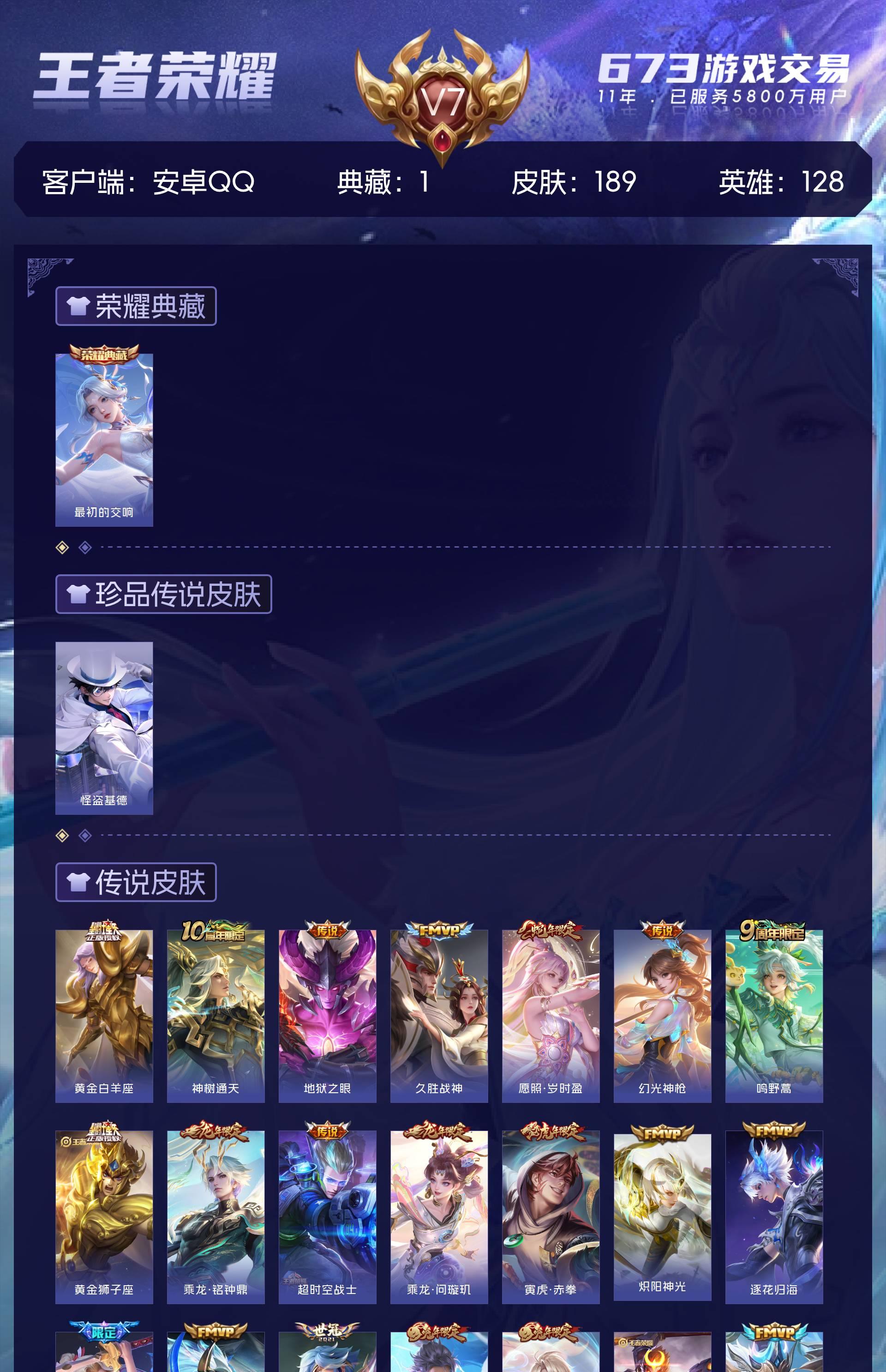 V7 皮肤189 英雄128 荣耀王者 荣耀典藏1 珍品传说1 星传说2 传说21