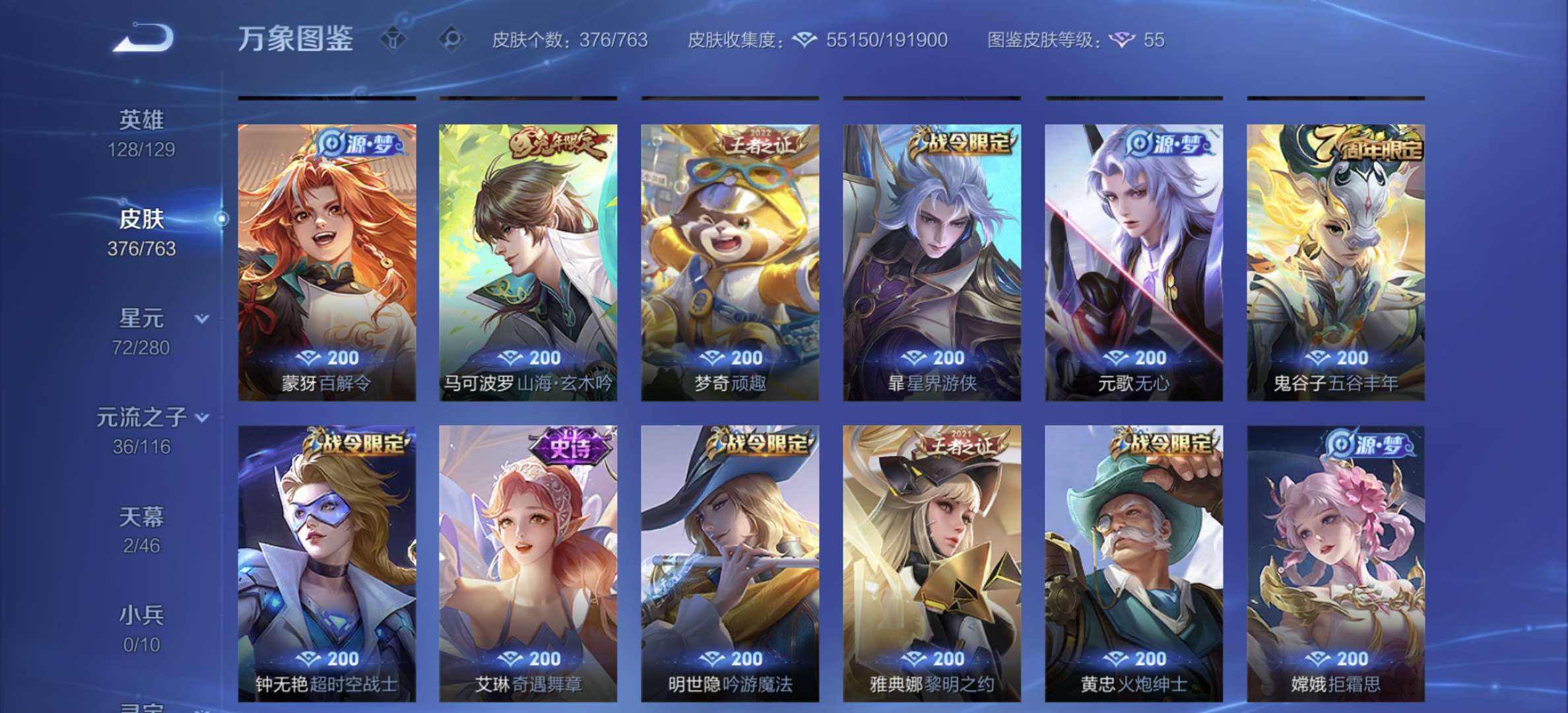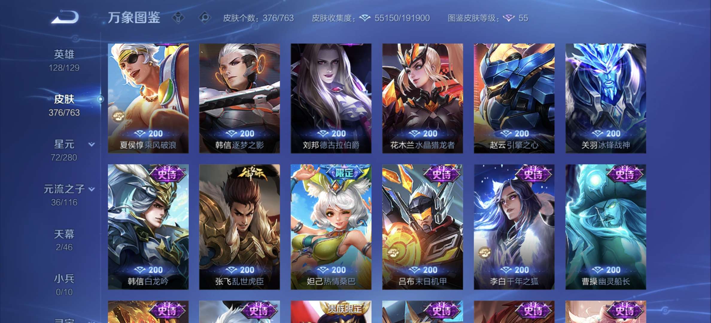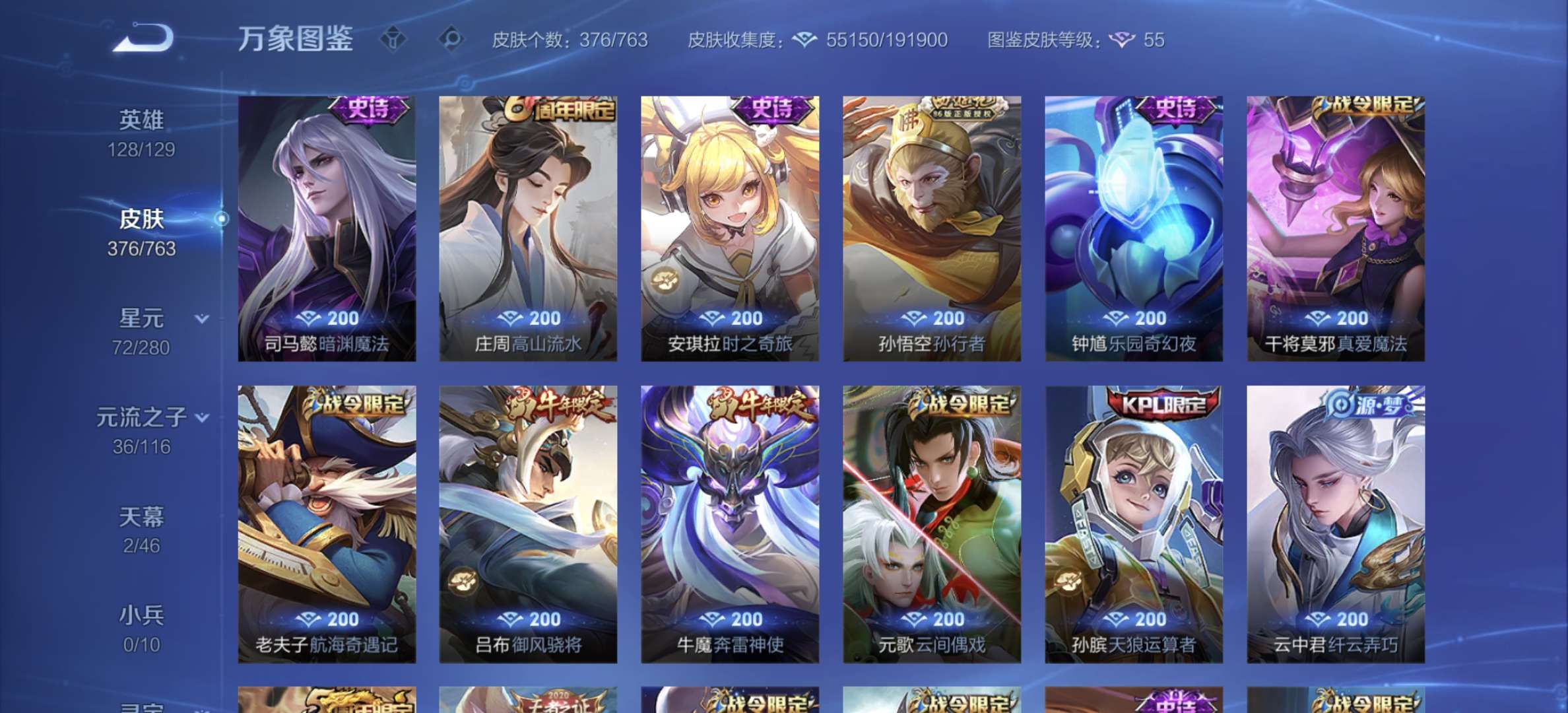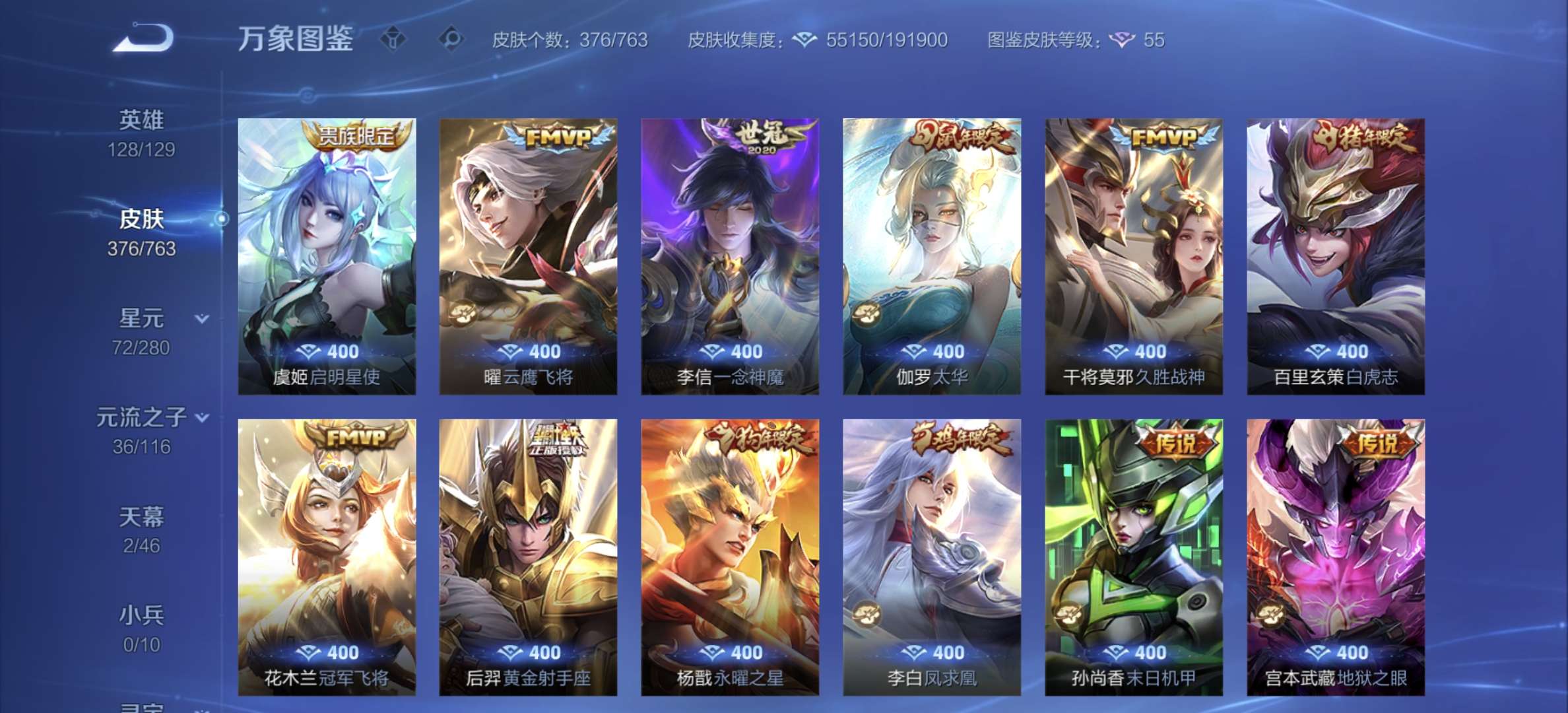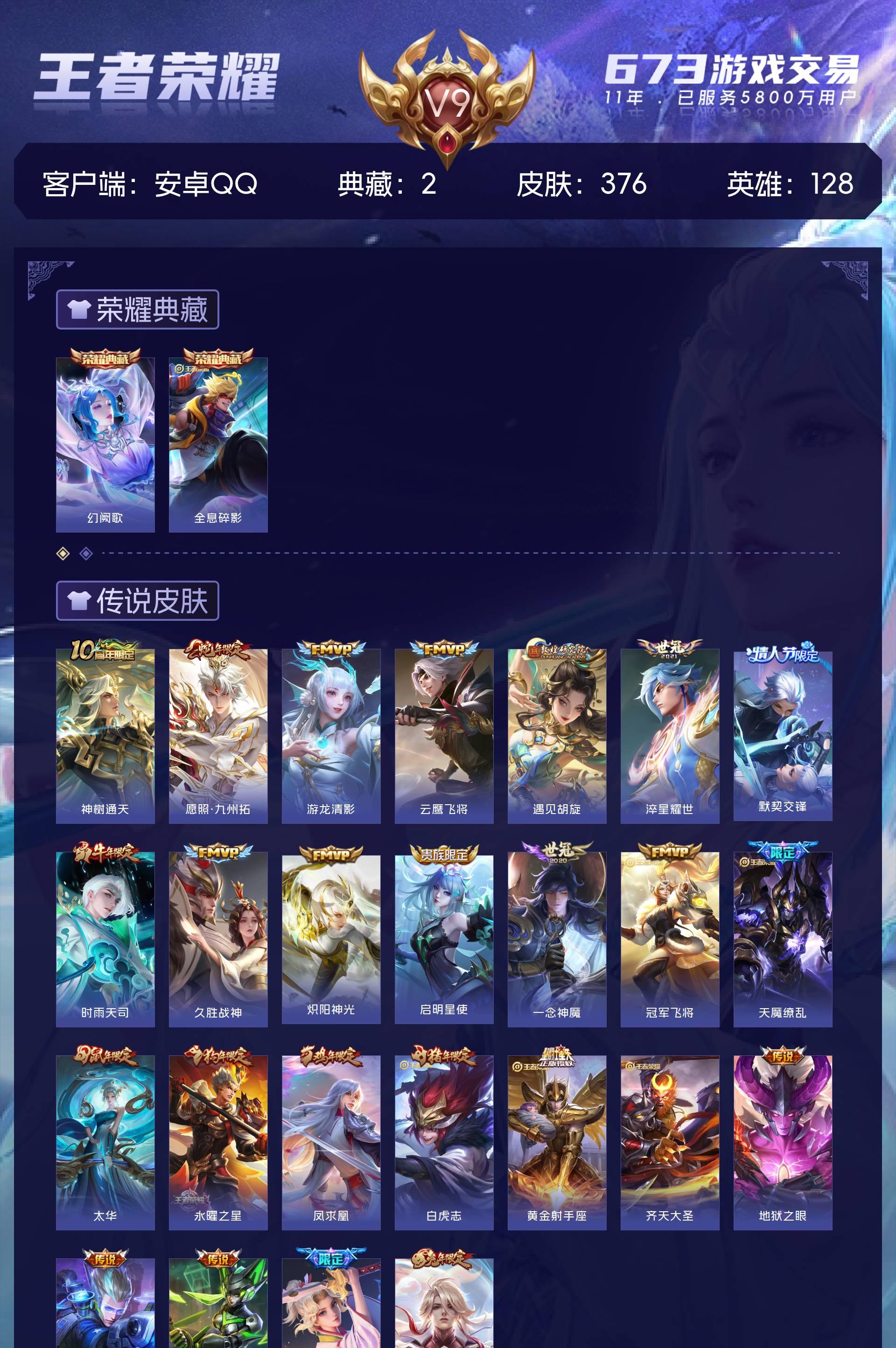V9 皮肤376 英雄128 最强王者 荣耀典藏2 星传说2 传说25