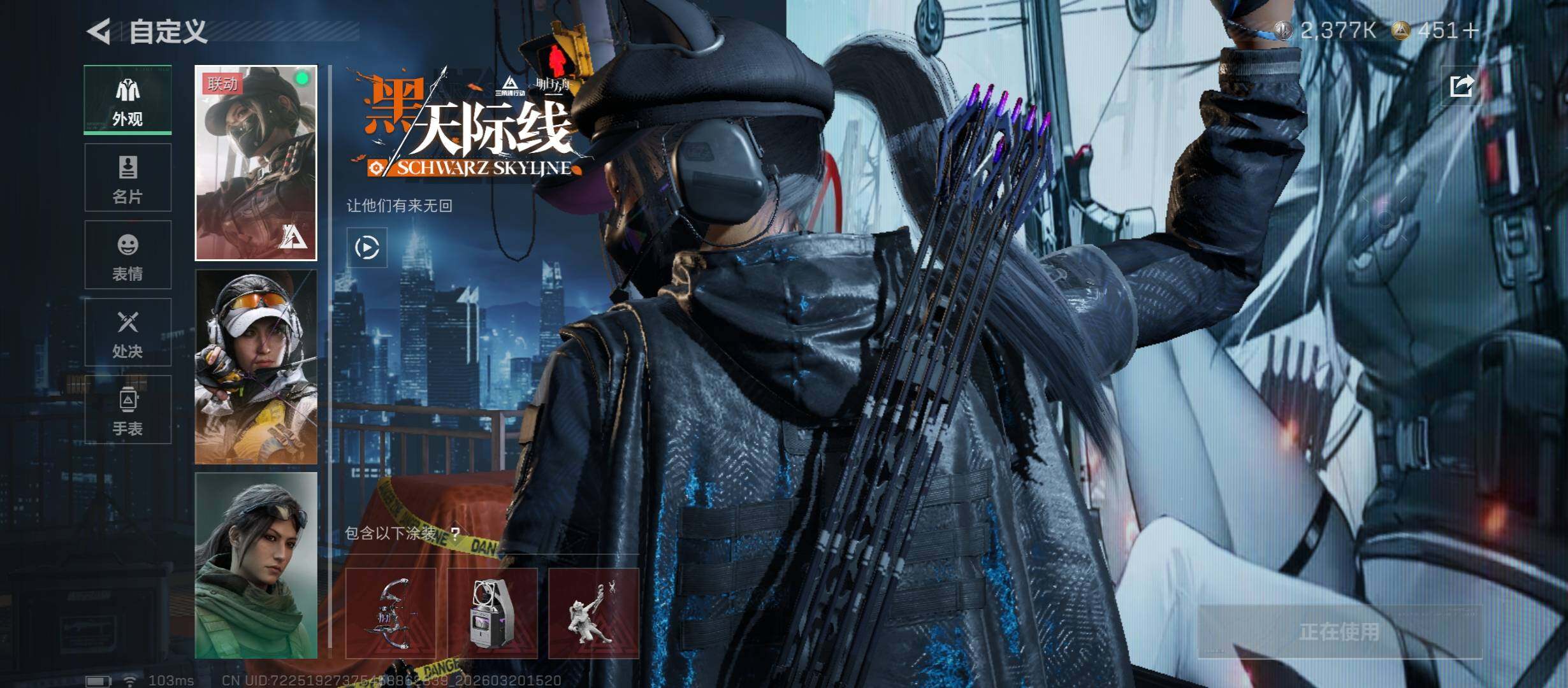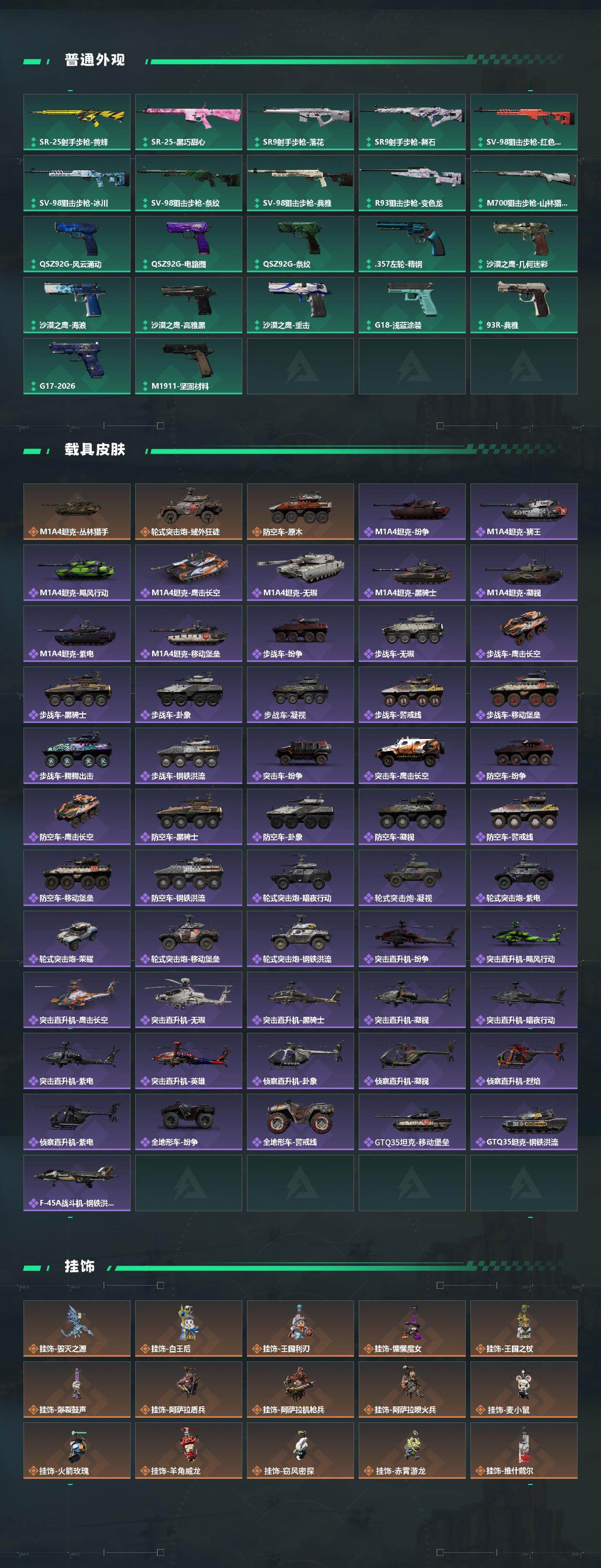 【干员外观】:红狼-蚀金玫瑰,骇爪-水墨云图,露娜-黑·天际线,威龙-铁面判官,威龙-壮志凌云,威龙-蛟龙特战队,威龙-飞虎,蜂医-送葬人·无题密令,牧羊人-街头之王,无名-夜鹰,深蓝-不破誓约,红狼-电锯惊魂,露娜-金牌射手