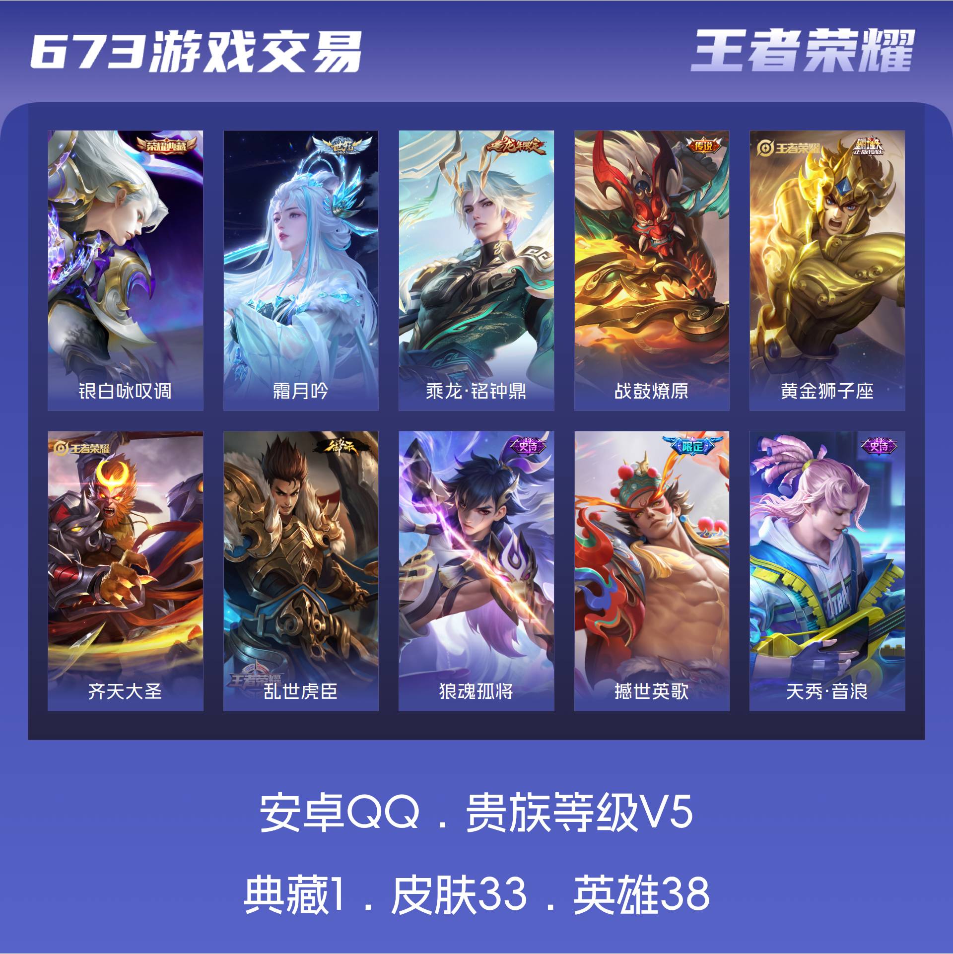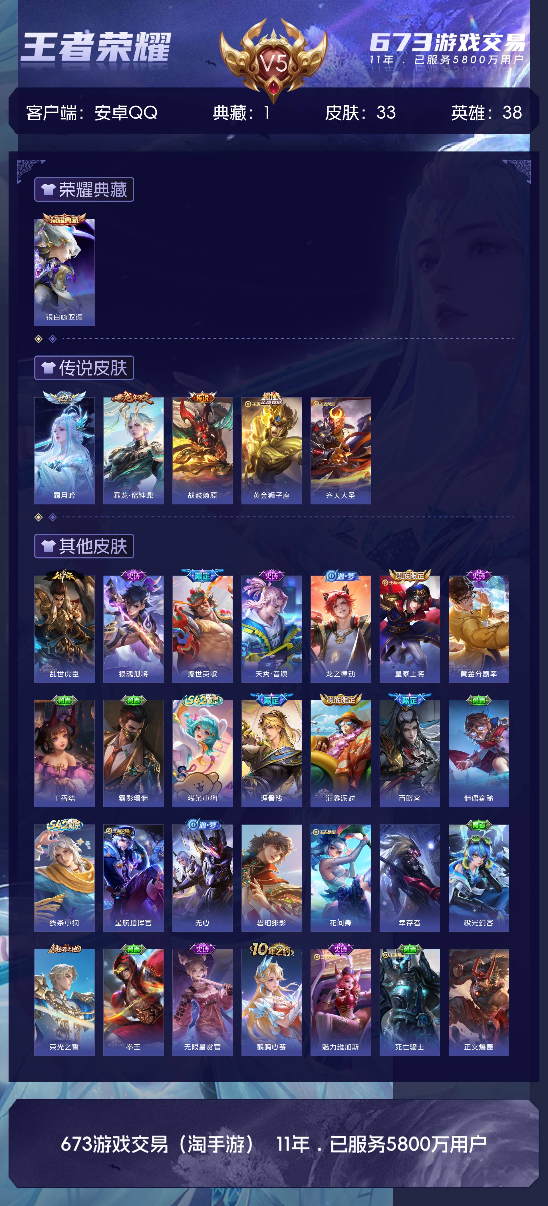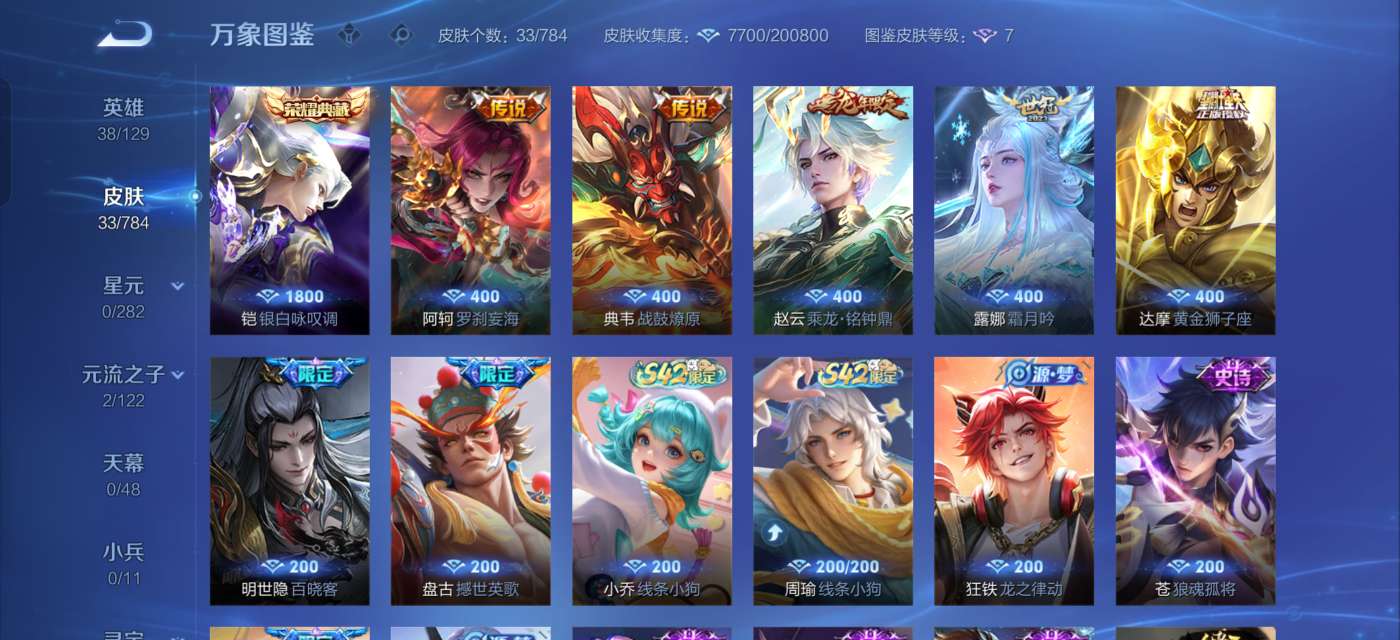 V5 皮肤33 英雄38 无双王者 荣耀典藏1 传说5