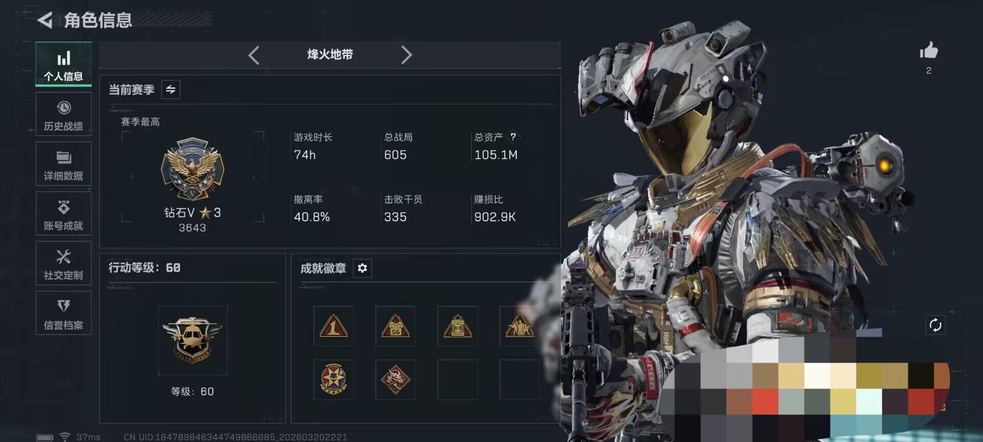 总资产(M):105M/哈夫币(K):1594K/
