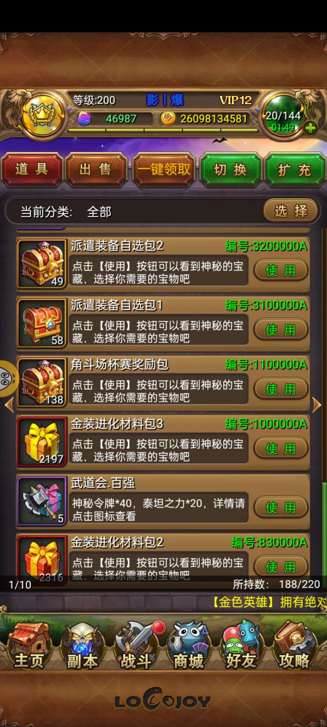 武道会百强,金币道具攒的多,还一堆没用 不搞虚战力