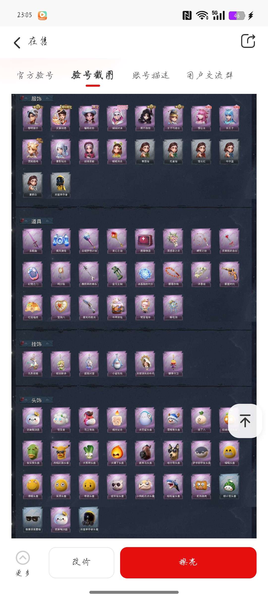 通过App,与卖家商议价格及保险,并向卖家索要账号最新截图,确认后下单购买。