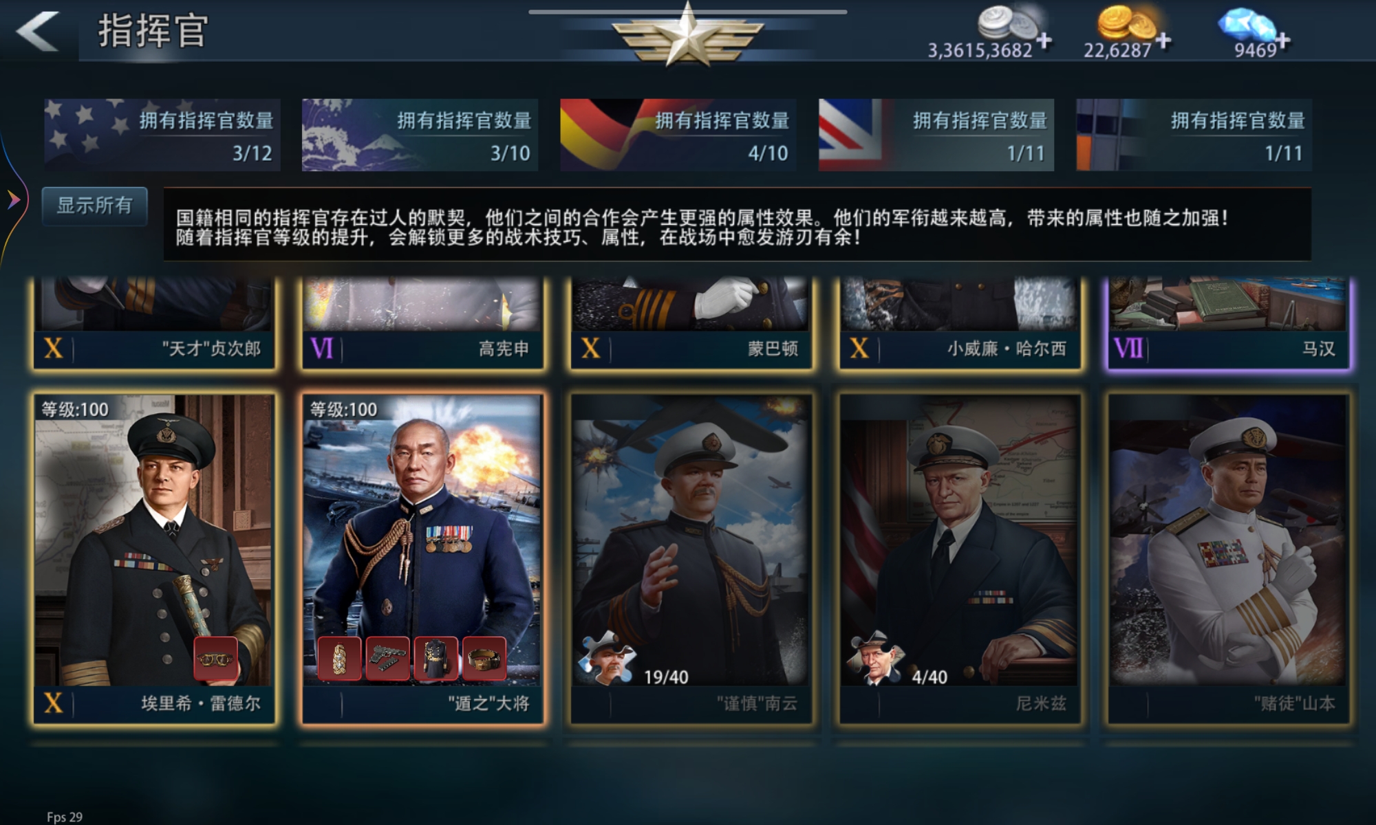 中将号,盾之,雷德尔等12个指挥,船有梅鹰,夜灵,沙梦清梦,玛皇,休斯盾,首领1.8秒疾风还可刷