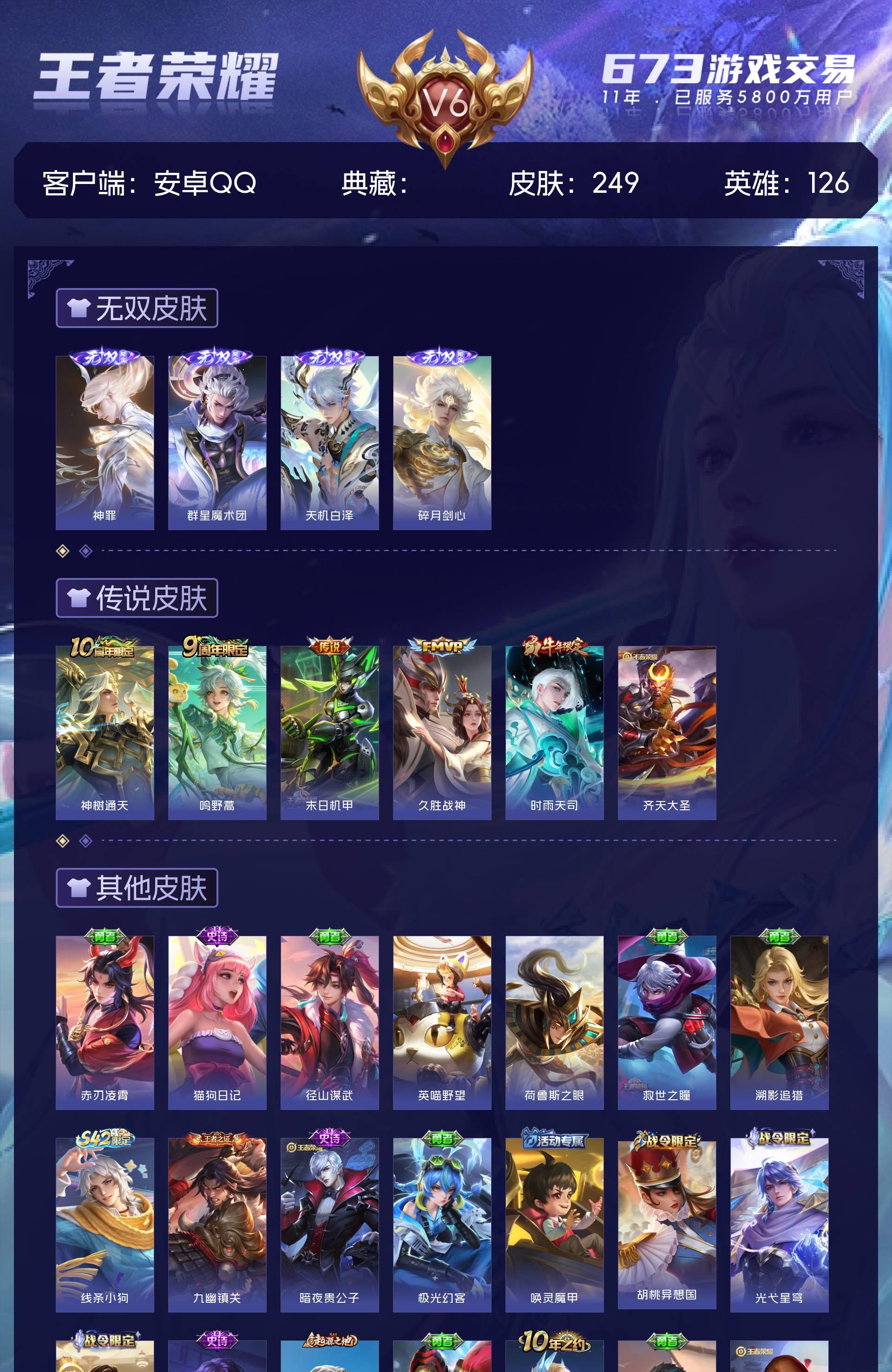 V6 皮肤249 英雄126 无双王者 无双皮肤4 传说6