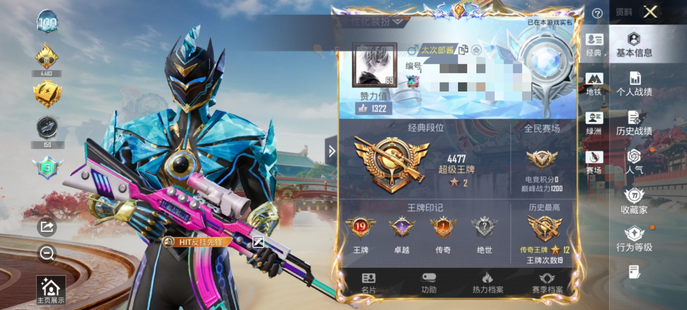 可二次实名【连体号10特效枪9粉装2载具 送王者1无双18传说301皮肤1典藏1星元幽冥之眼 秒换绑不用等】 安卓Q区-99078热力值-237套装-319枪皮 【2载具】 霜龙神御(云雾蓝) 宝马M4(圣保罗黄)【2稀有】 AKM-百万伏特 Mark.06蓝螳螂【9粉装】 水仙星 猩猩队长 俏雪含霜 碧影闪光 飒粉甜心 角色-烟云彩露 幻影飞狐 幻彩电音 角色-羊梦糖心【10特效枪】 AKM-炫紫旋律(5级) Mk14-福马献瑞(5级) SCAR-L-锦绣绵绵(5级) M762-电糖天使(7级