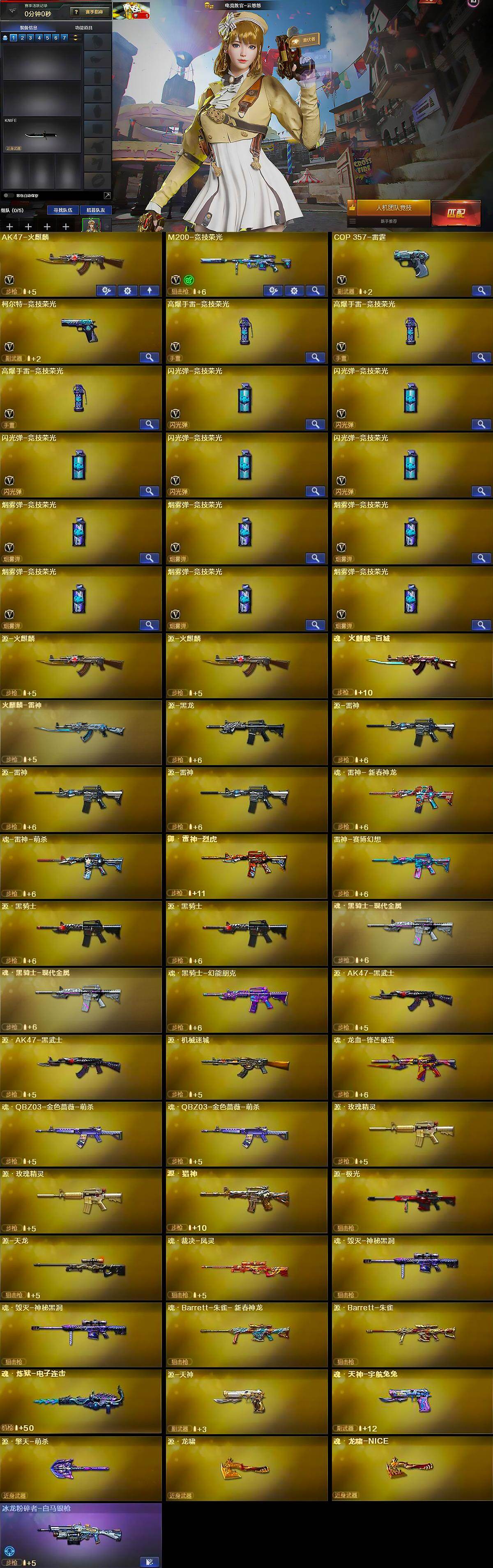 【英雄级武器】:AK47-火麒麟,M200-竞技荣光,COP-雷霆,柯尔特-竞技荣光,高爆手雷-竞技荣光*3,闪光弹-竞技荣光*5,烟雾弹-竞技荣光