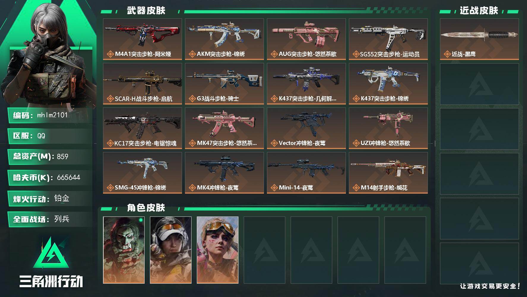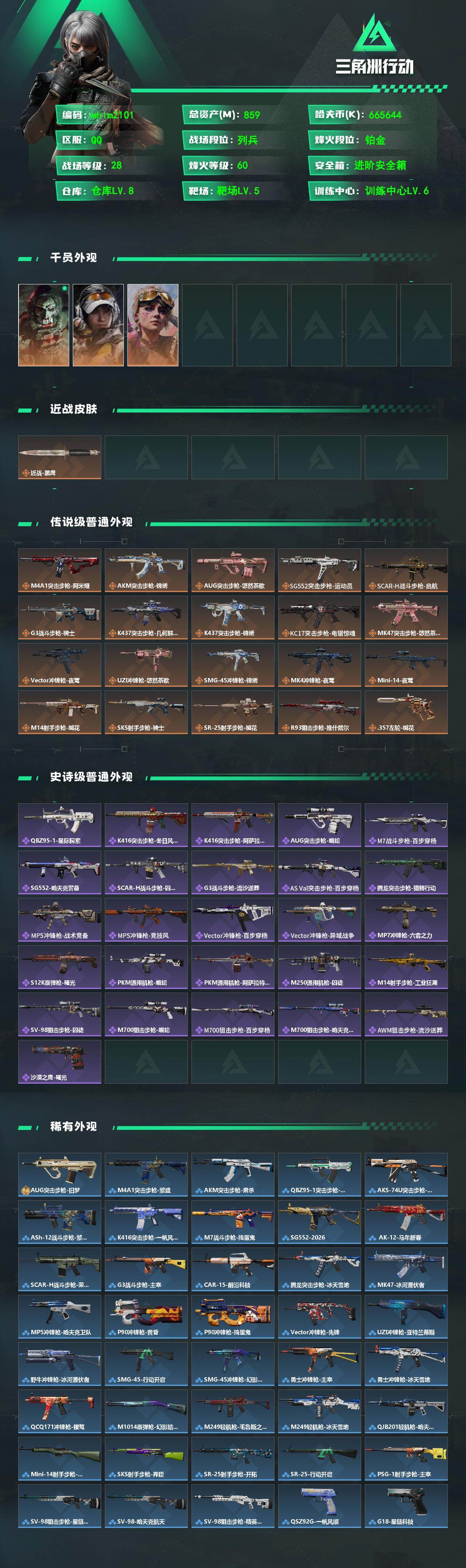 859m总资产-665644k哈夫币-60烽火等级-铂金-28战场等级-列兵