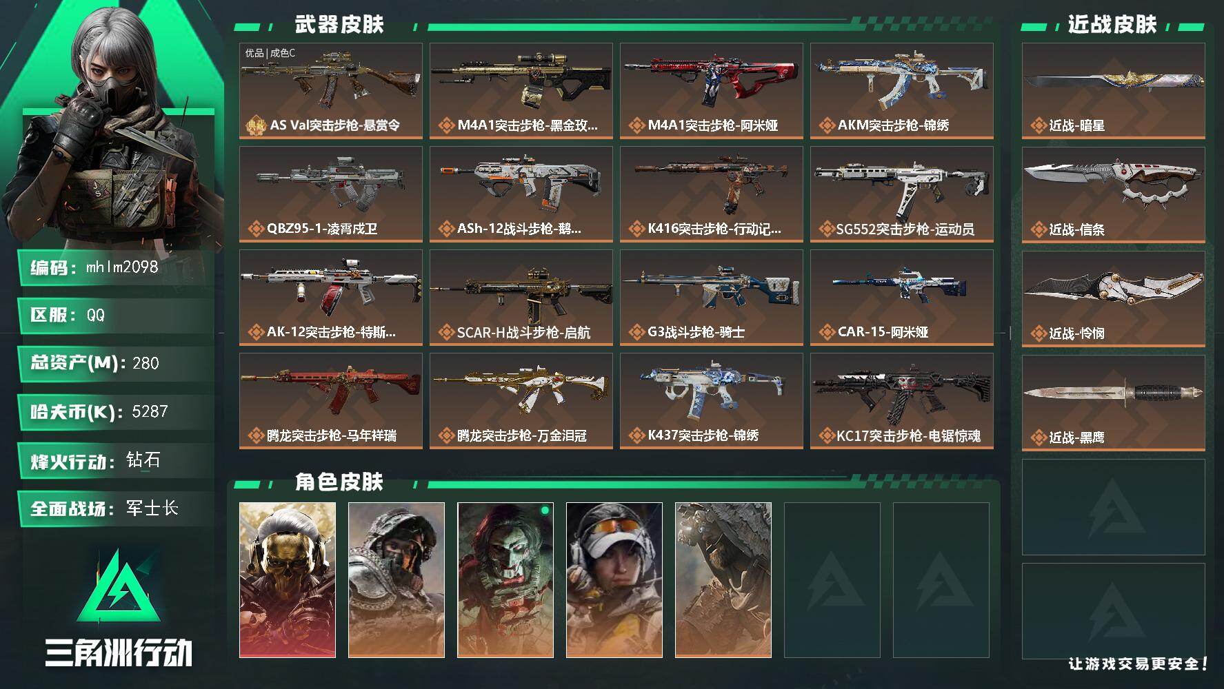 280m总资产-5287k哈夫币-60烽火等级-钻石-34战场等级-军士长【