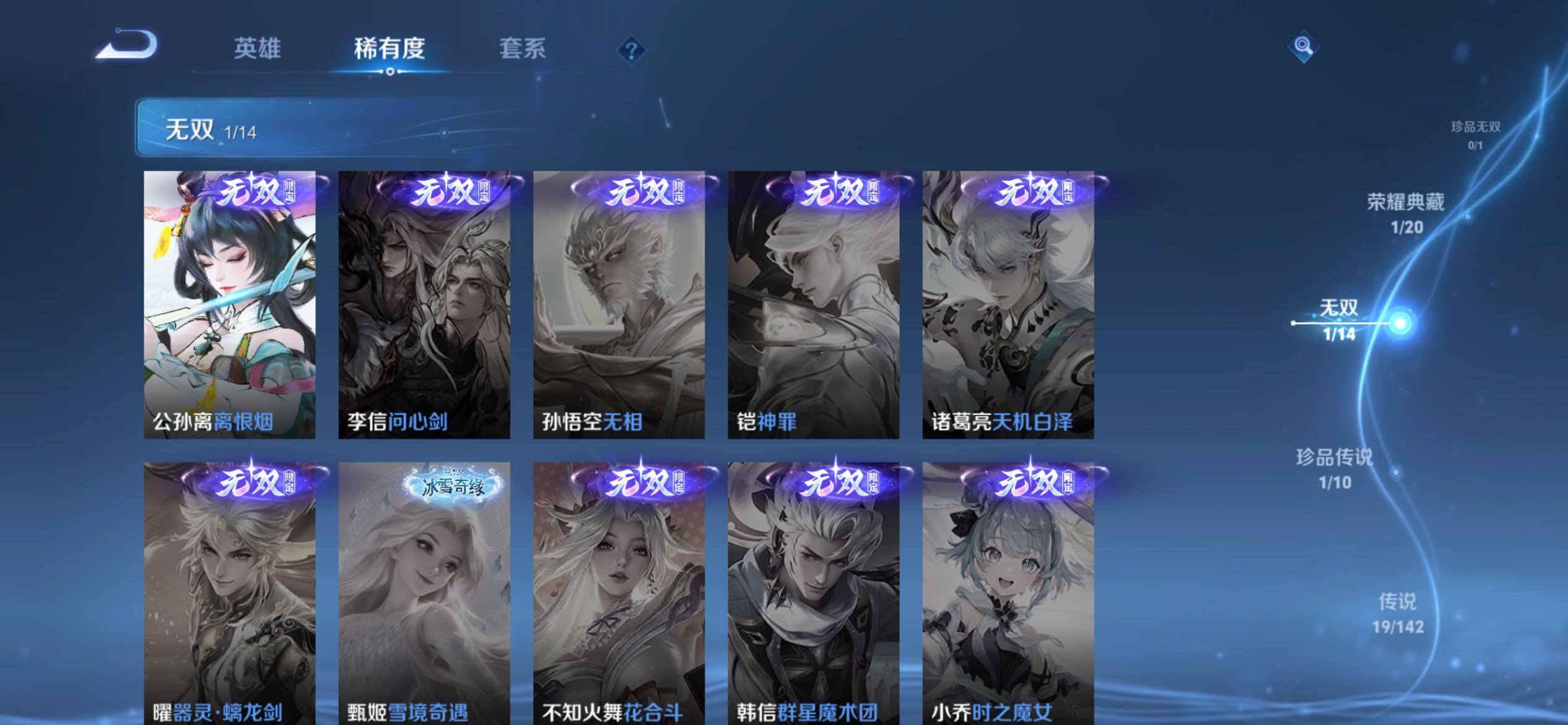 【英雄】:捷风,贤者,不死鸟,芮娜,猎枭,蝰蛇,雷兹,零,铁臂,斯凯,奇乐,炼