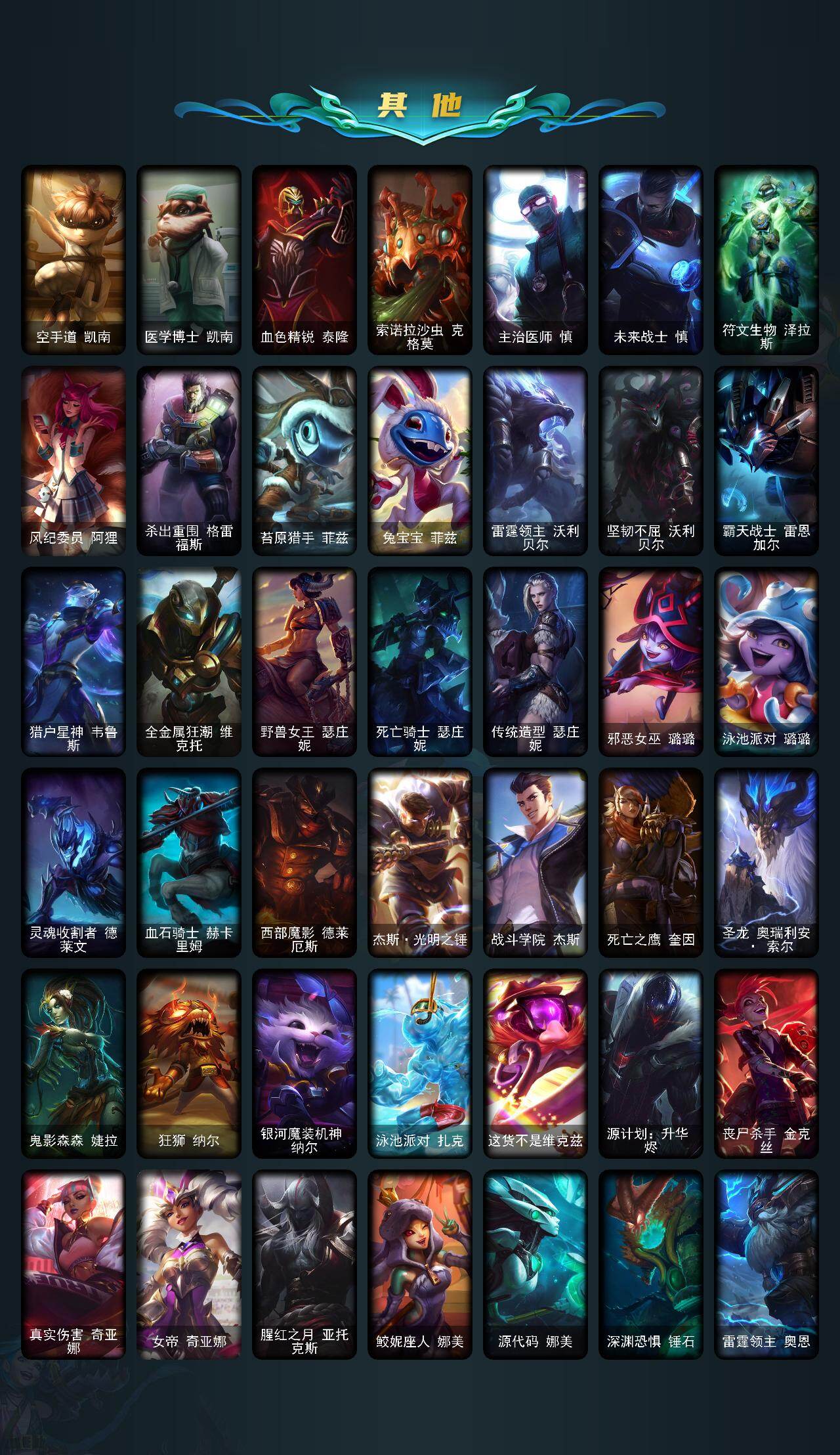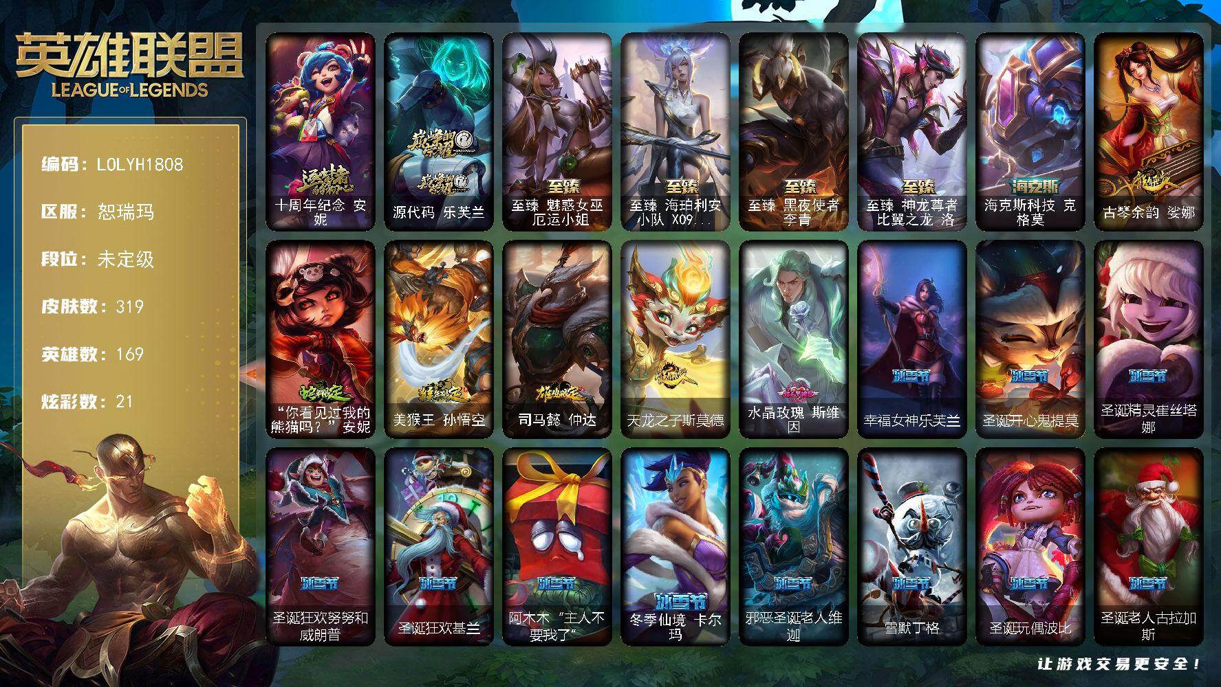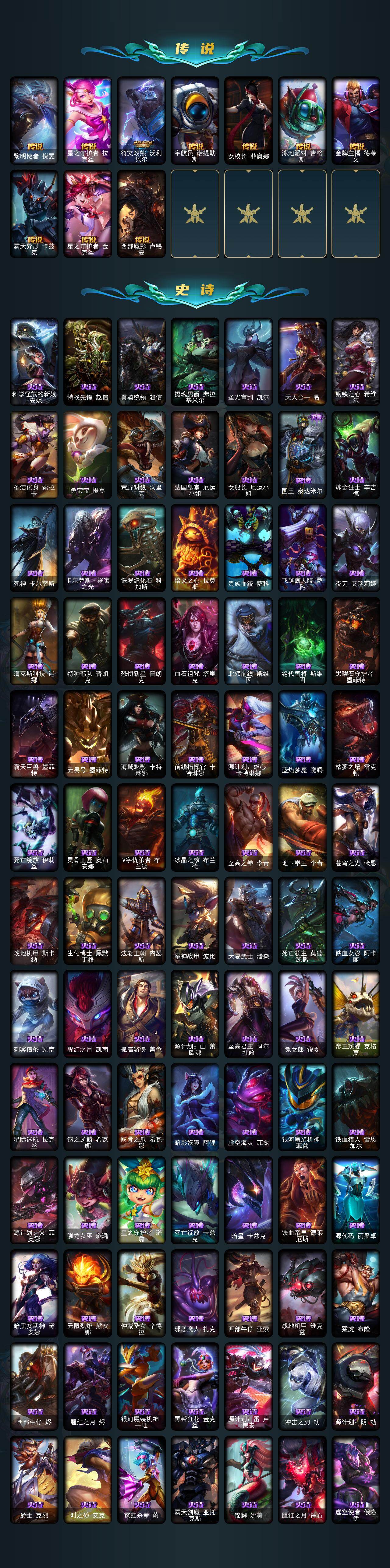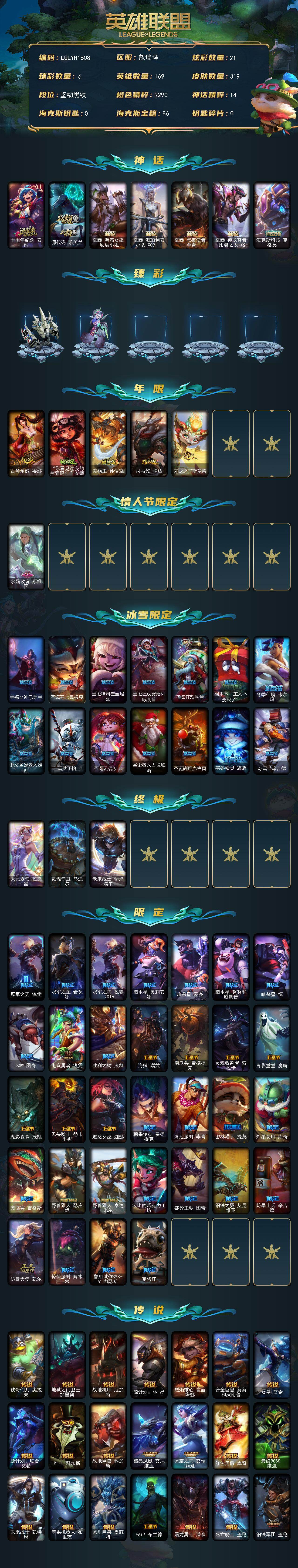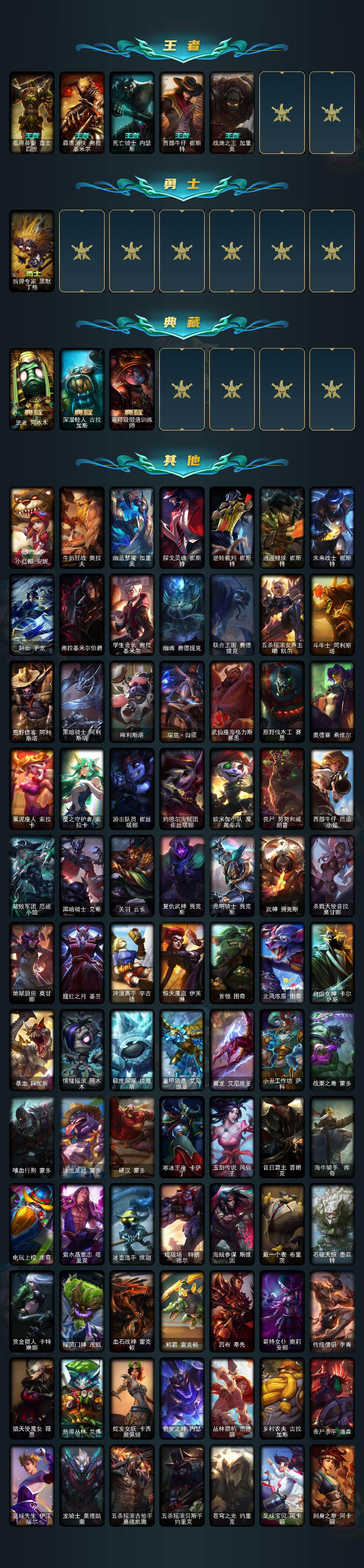 未定级段位-169英雄-319皮肤-21炫彩-3终极-7神话-52限定-31传说-91史诗