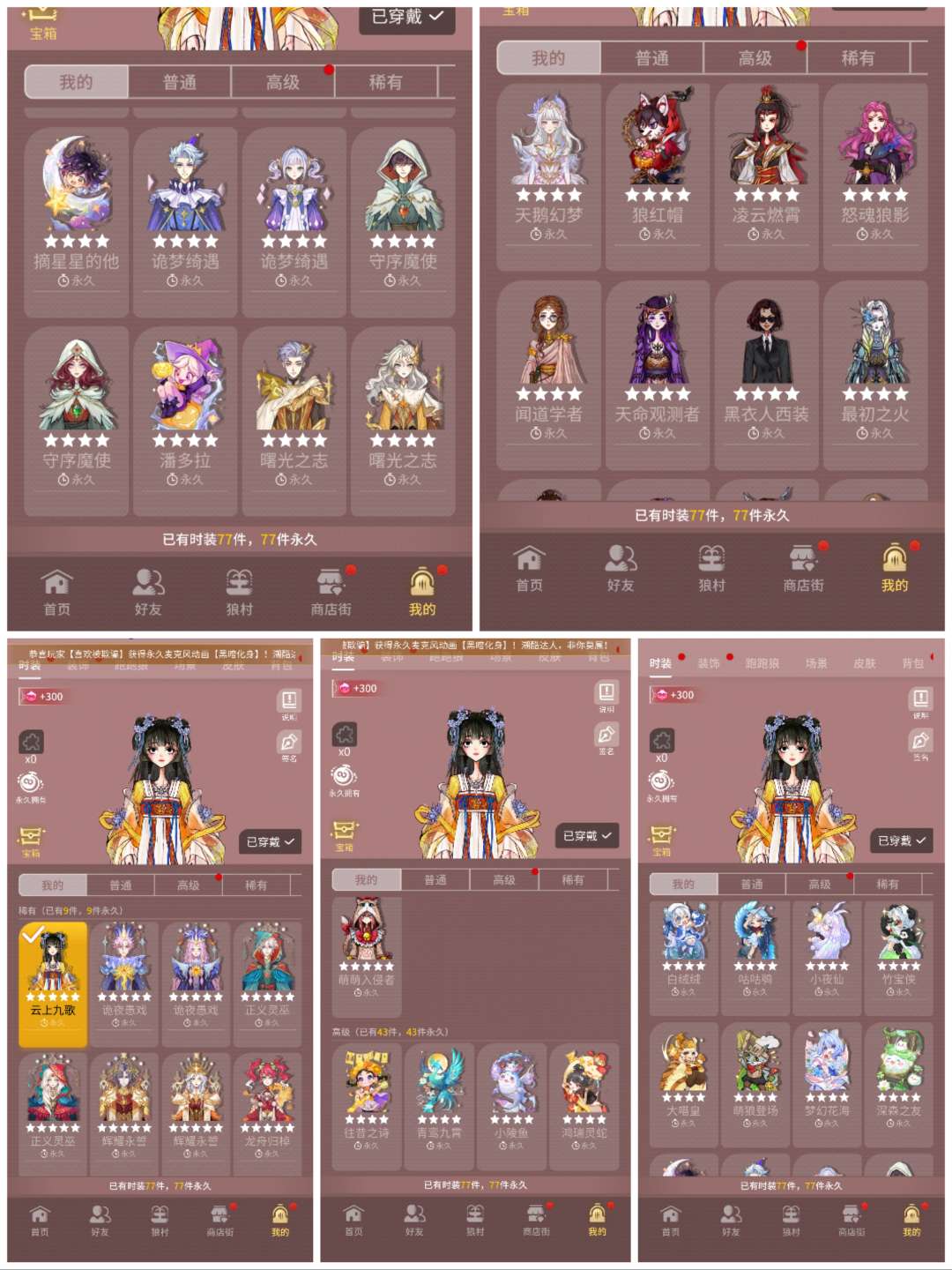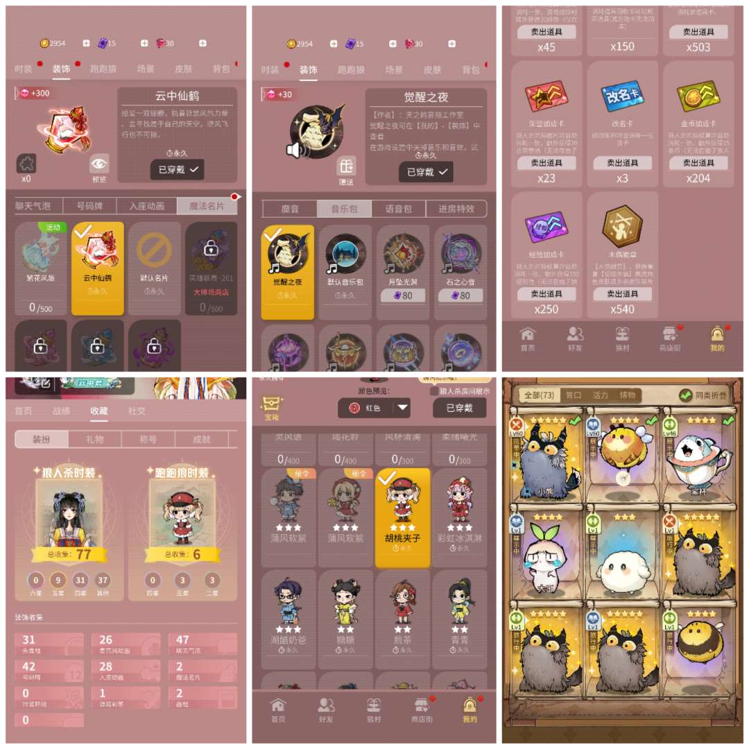 近50W魅力,仙鹤名片9五星,四阶二,vip6,77时装狼人杀
