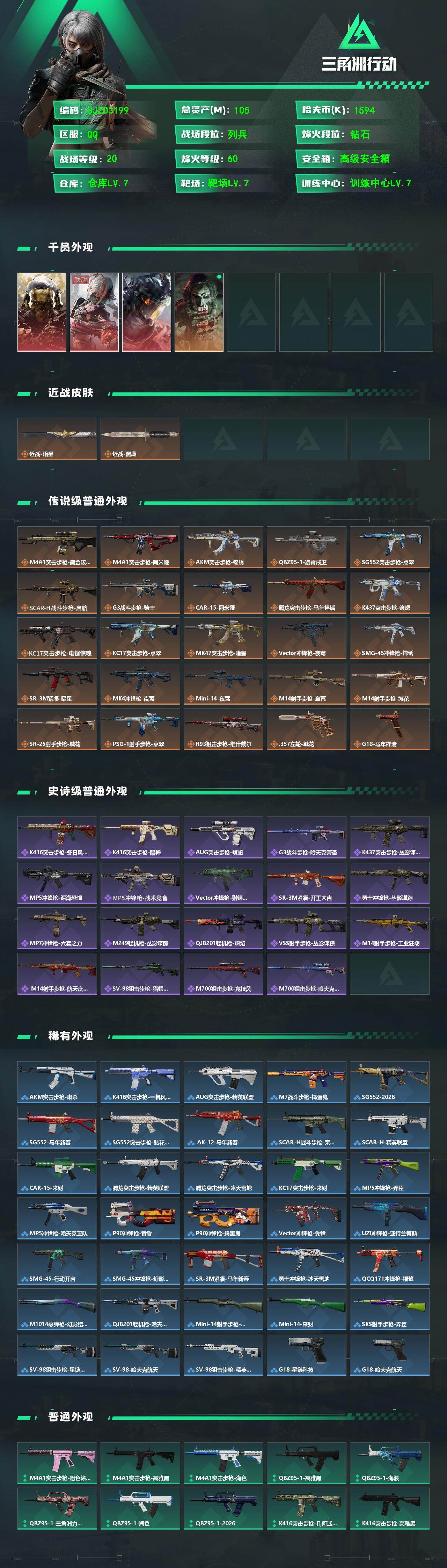 105m总资产-1594k哈夫币-60烽火等级-钻石-20战场等级-列兵【干
