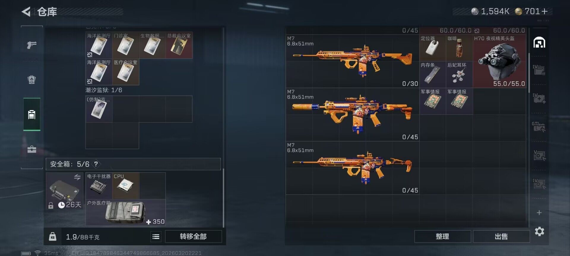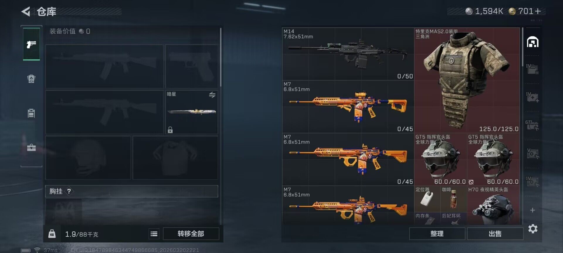 105m总资产-1594k哈夫币-60烽火等级-钻石-20战场等级-列兵