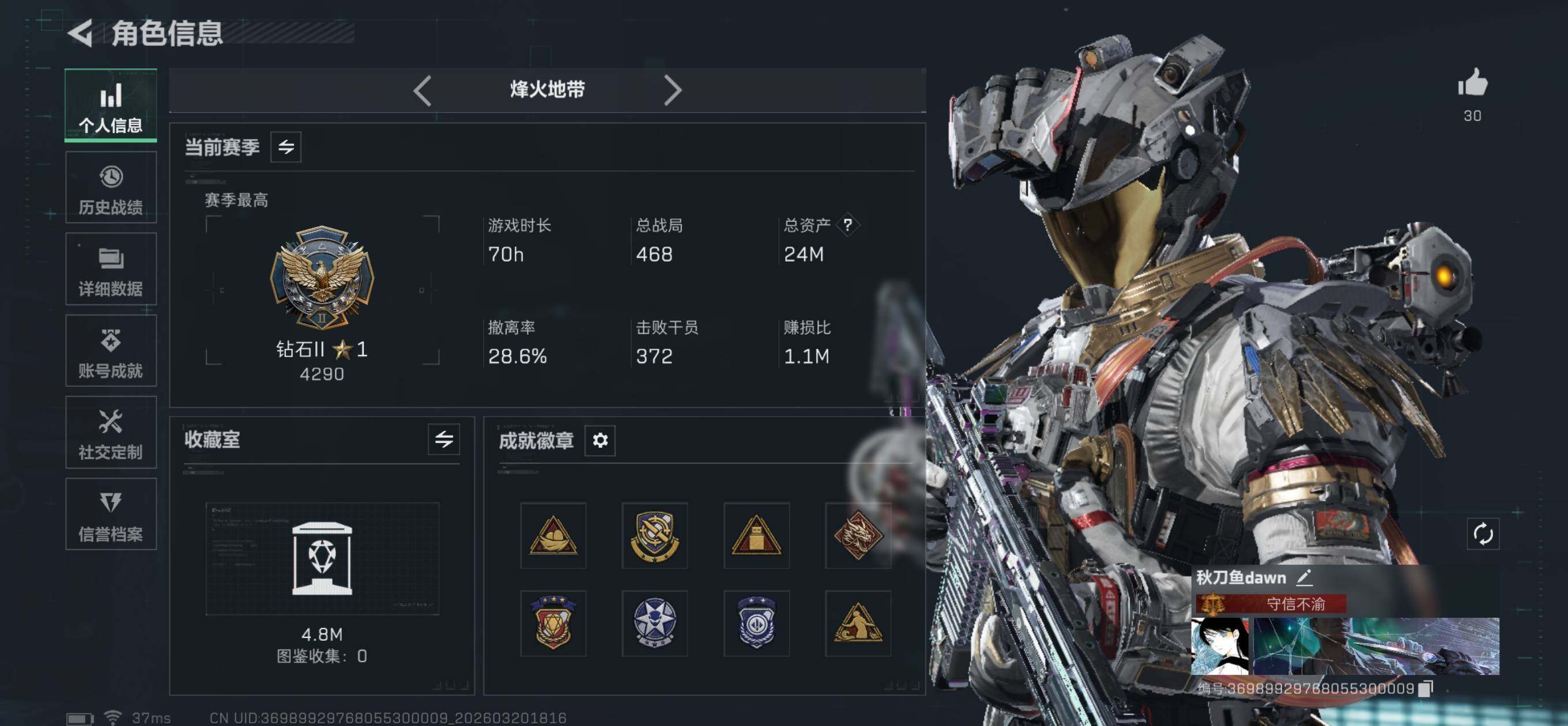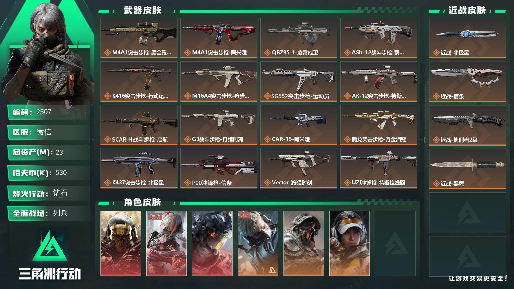 23m总资产-530k哈夫币-60烽火等级-钻石-7战场等级-列兵