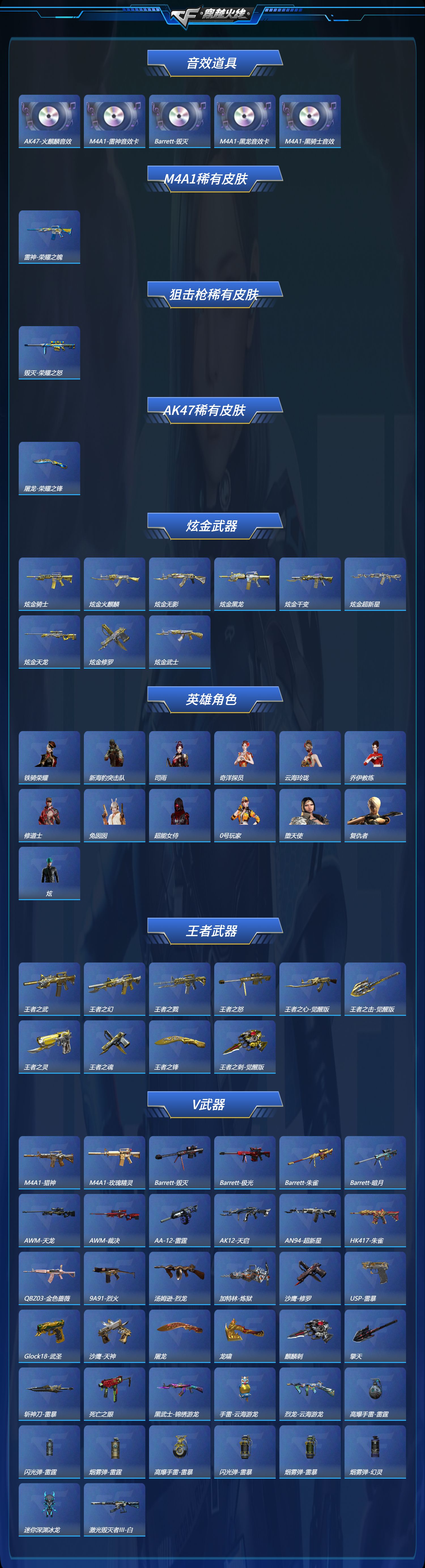 【王者级武器】 王者之势-觉醒版 王者之灵 王者之魂 王者之刺-觉醒版 王者之戮 王者之击-觉醒版 王者之幻 王者之怒 王者之心-觉醒版 王者之魄-觉醒版 王者之锋 王者之力-觉醒版 王者之武 王者之翼