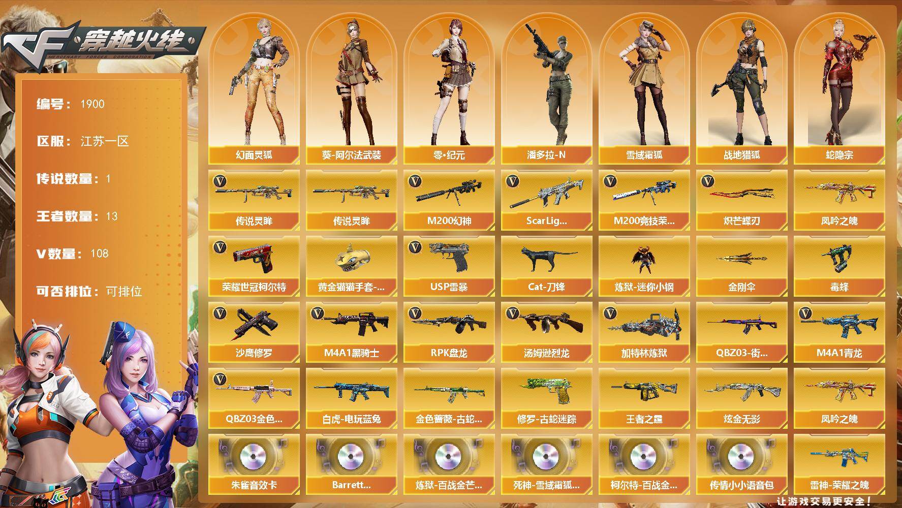 MCF779【170V 18王者 传说光耀 幻神黄忠皮肤 4防角色2个 6烈龙 荣耀之怒荣耀之锋荣耀之魄 斗鱼雷神 传奇天龙 冠军火麒麟】【等级】102【区服】辽宁一区【VIP】5【传说级武器】传说光耀