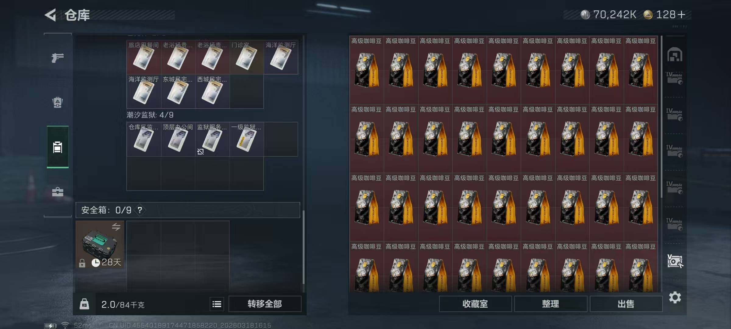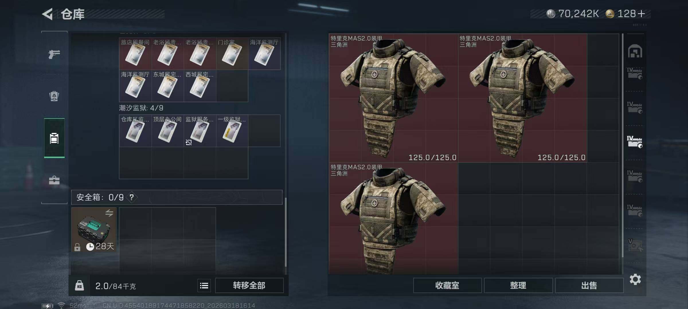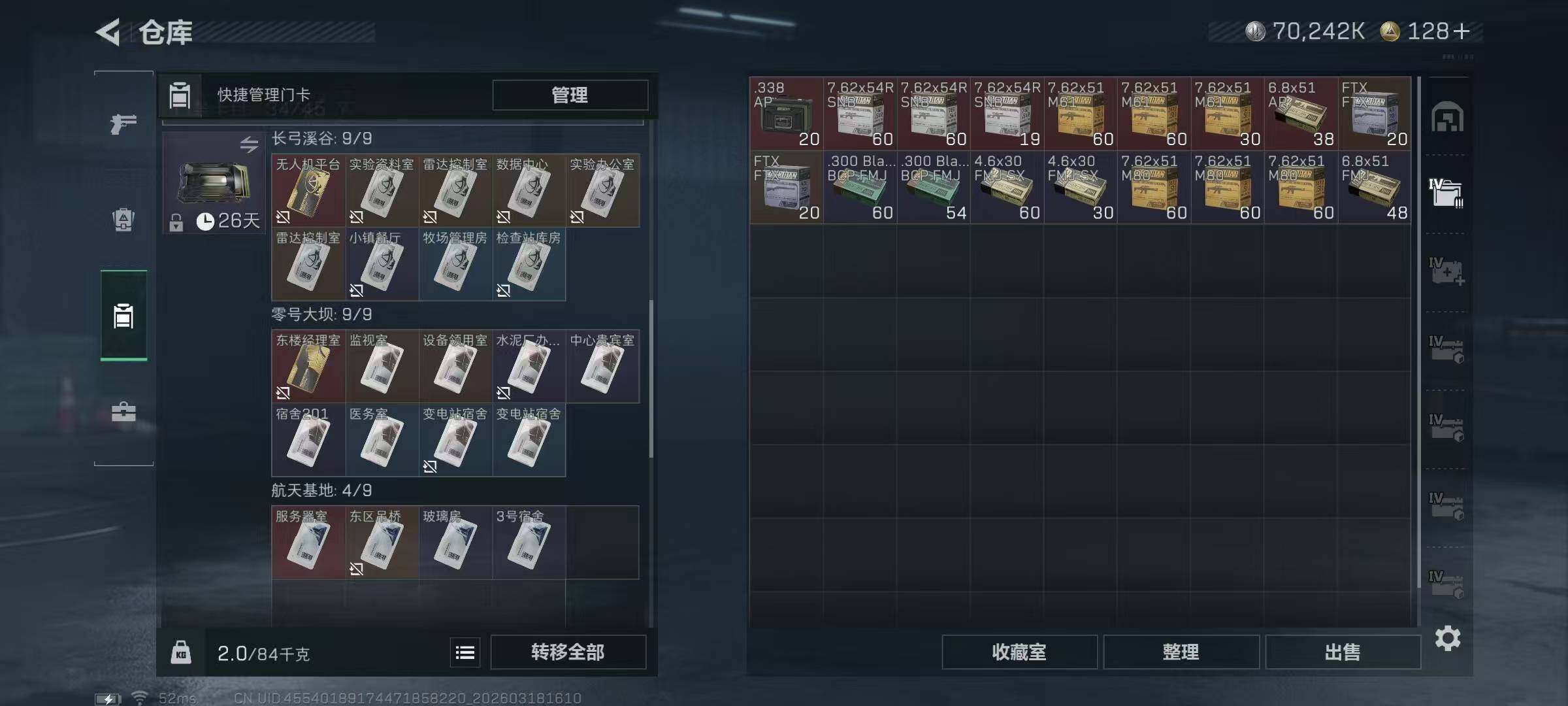 【SJ1454】【无封禁中产带S8顶级3X3】60级/总资302M/流资210M/128点卷/刀皮(处刑者)红狼(电锯惊魂)乌鲁鲁(荒原猎手)深蓝(不破誓约)露娜(金牌射手)骇爪(维什戴尔)/9级仓库6级体力6级负重3级潜水/20发AW子弹+327发其他红弹