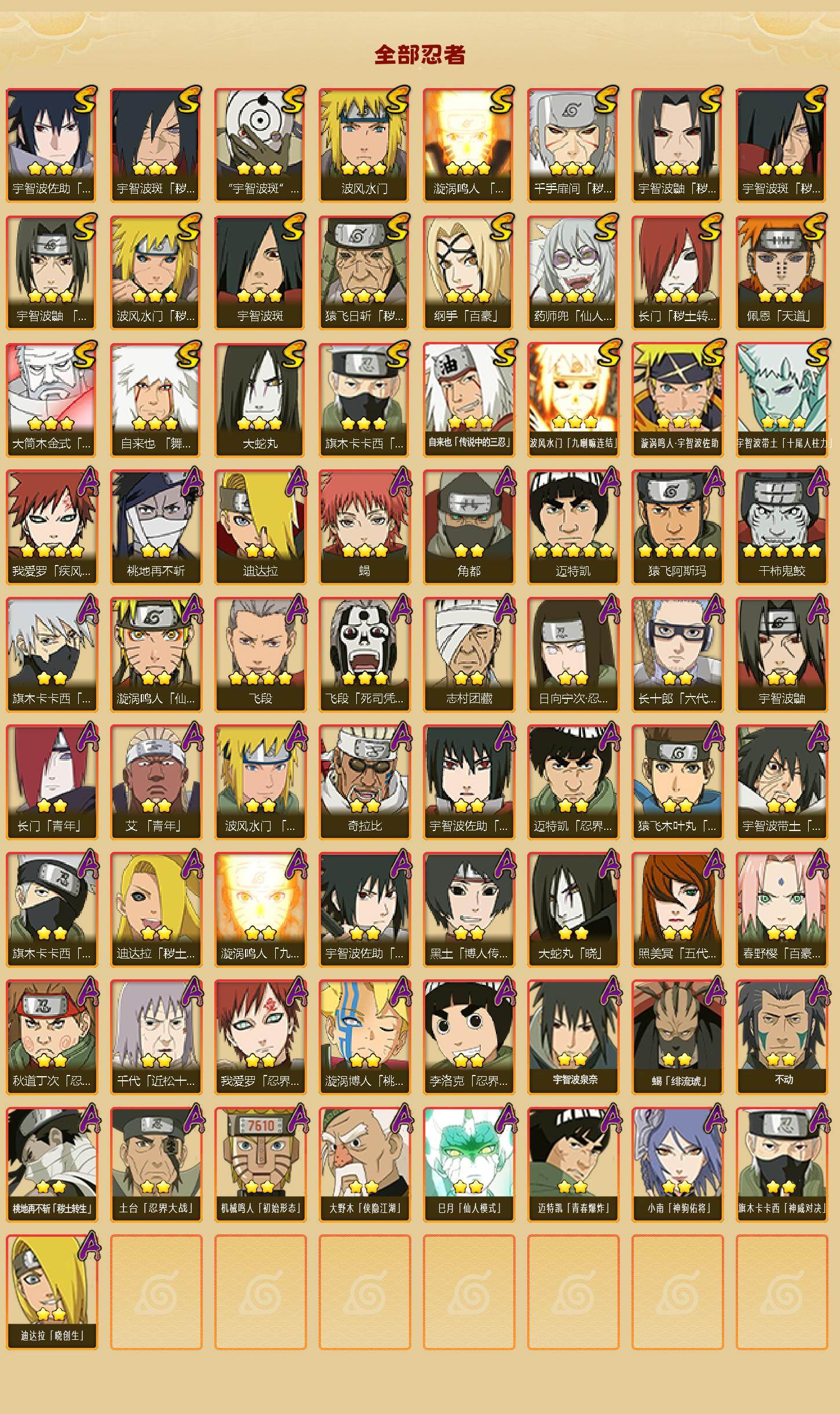 【HYZ3060】V10/战力1158W/S忍24/A忍49/秽土转生-宇智波斑/百豪-纲手/2星大野木「侠隐江湖」/忍界大战-旗木卡卡西/3星波风水门「九喇嘛连结」/3星宇智波带土「十尾人柱力」/5星猿飞阿斯玛/须佐能乎-旗木卡卡西/2星小南「神驹佑将」/宇智波斑/秽土转生-猿飞日斩/五代目水影-照美冥/3星蝎/5星迈特凯/秽土转生-千手扉间/2星旗木卡卡西「神威对决」/仙人模式-药师兜/六代目水影-长十郎/2星蝎「绯流琥」/2星桃地再不斩「秽土转生」/百豪-春野樱/白面具-宇智波斑/3星自来