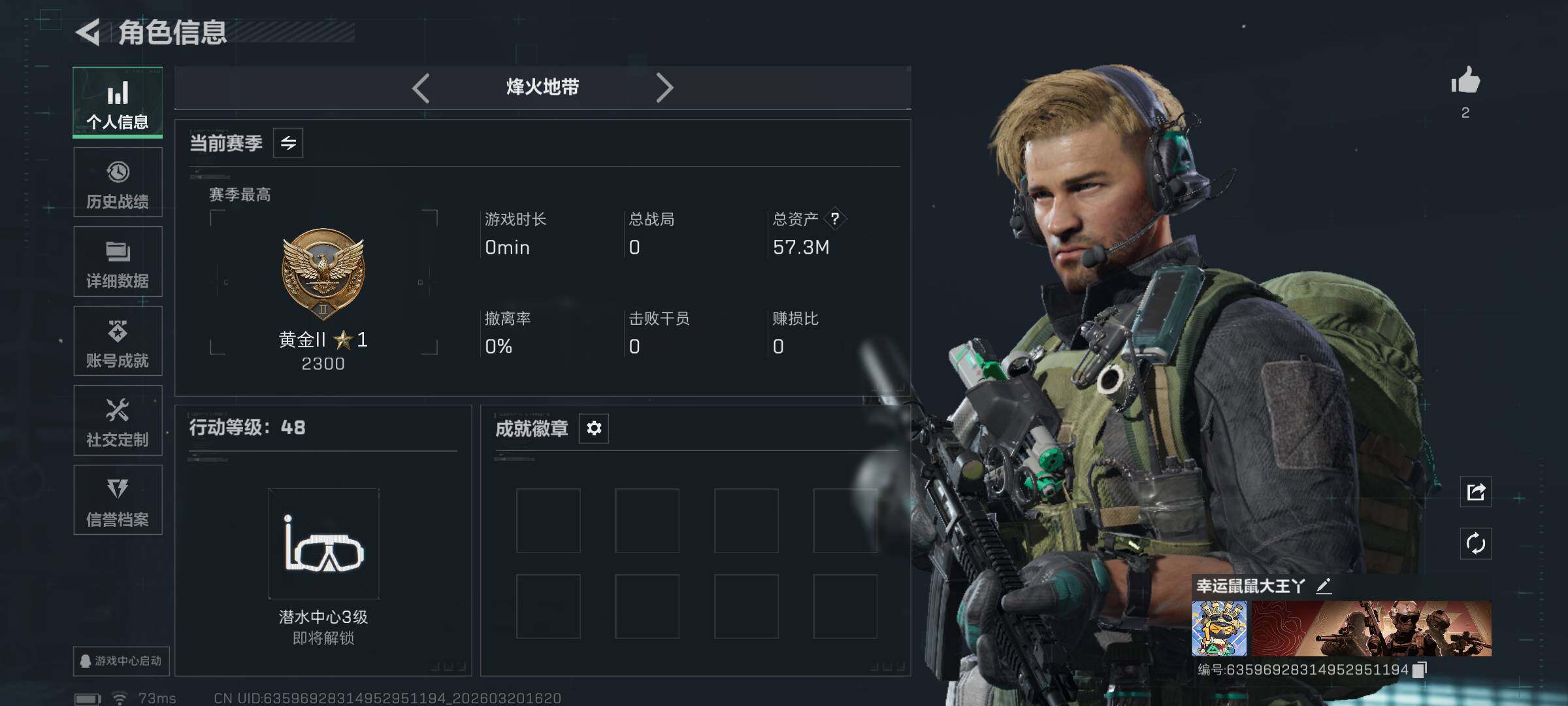 57m总资产-8963k哈夫币-48烽火等级-黄金-1战场等级-无军衔