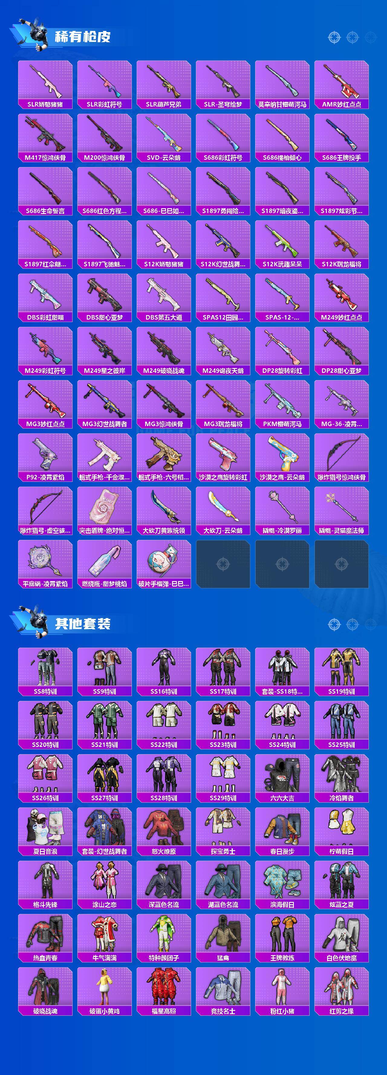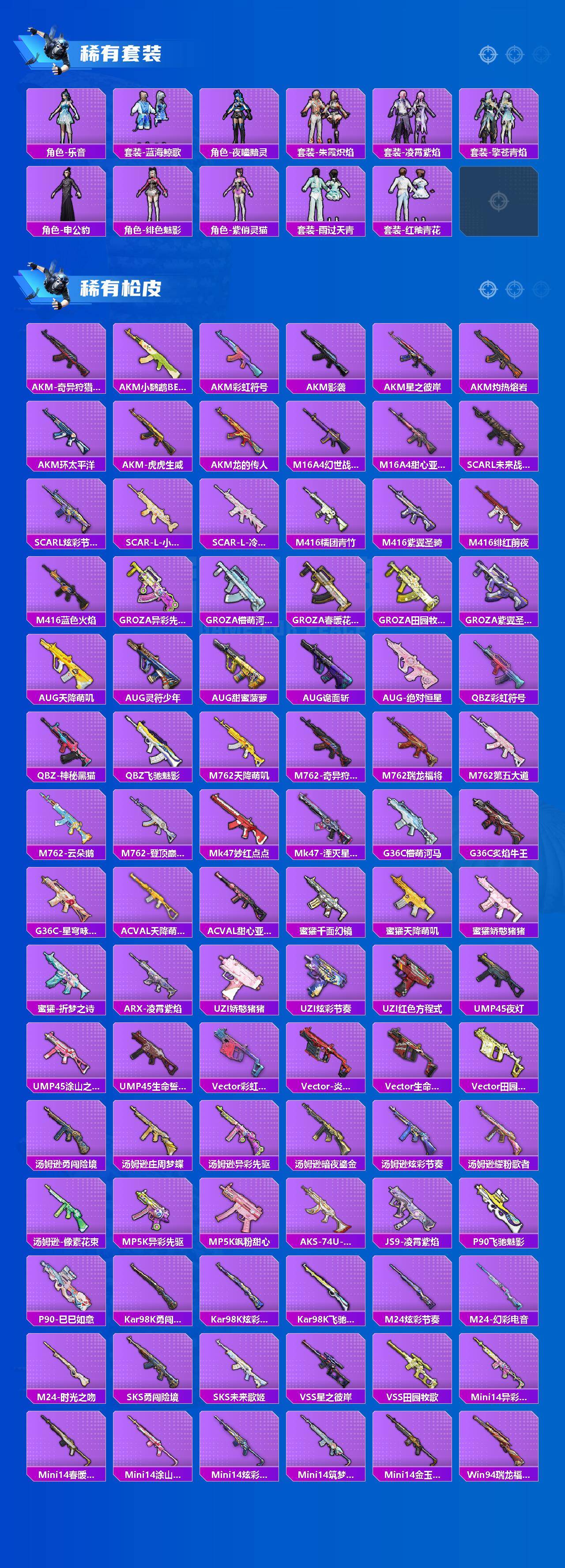 【粉色枪皮等级】:AKM-炫紫旋律(七级),SCAR-L-青春物语(七级),M416-五爪金龙(七级),