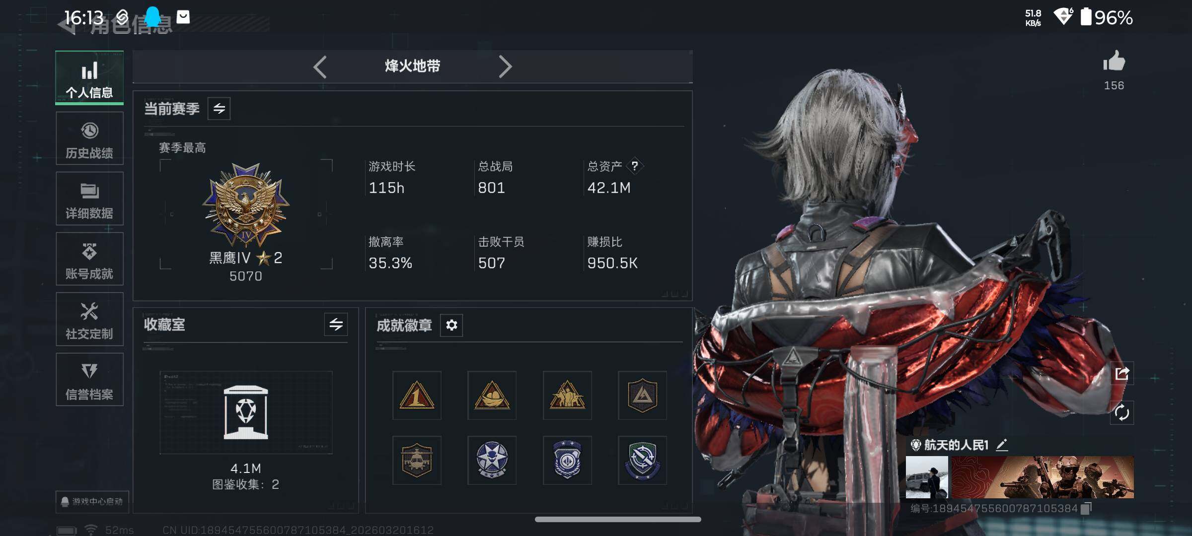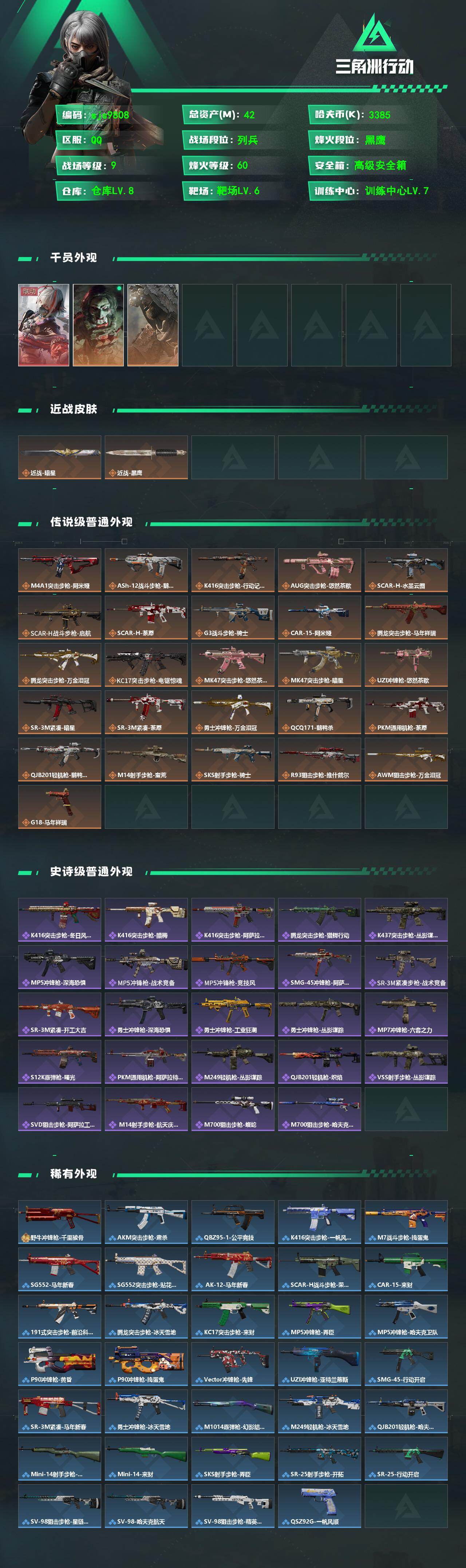 42m总资产-3385k哈夫币-60烽火等级-黑鹰-9战场等级-列兵