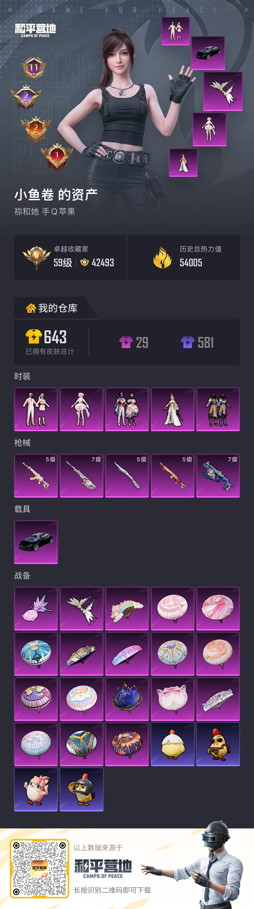 苹果 手Q-5粉装-5特效枪-1载具-2粉色飞行器-54005热力值-11王牌印记-123套装-176枪皮