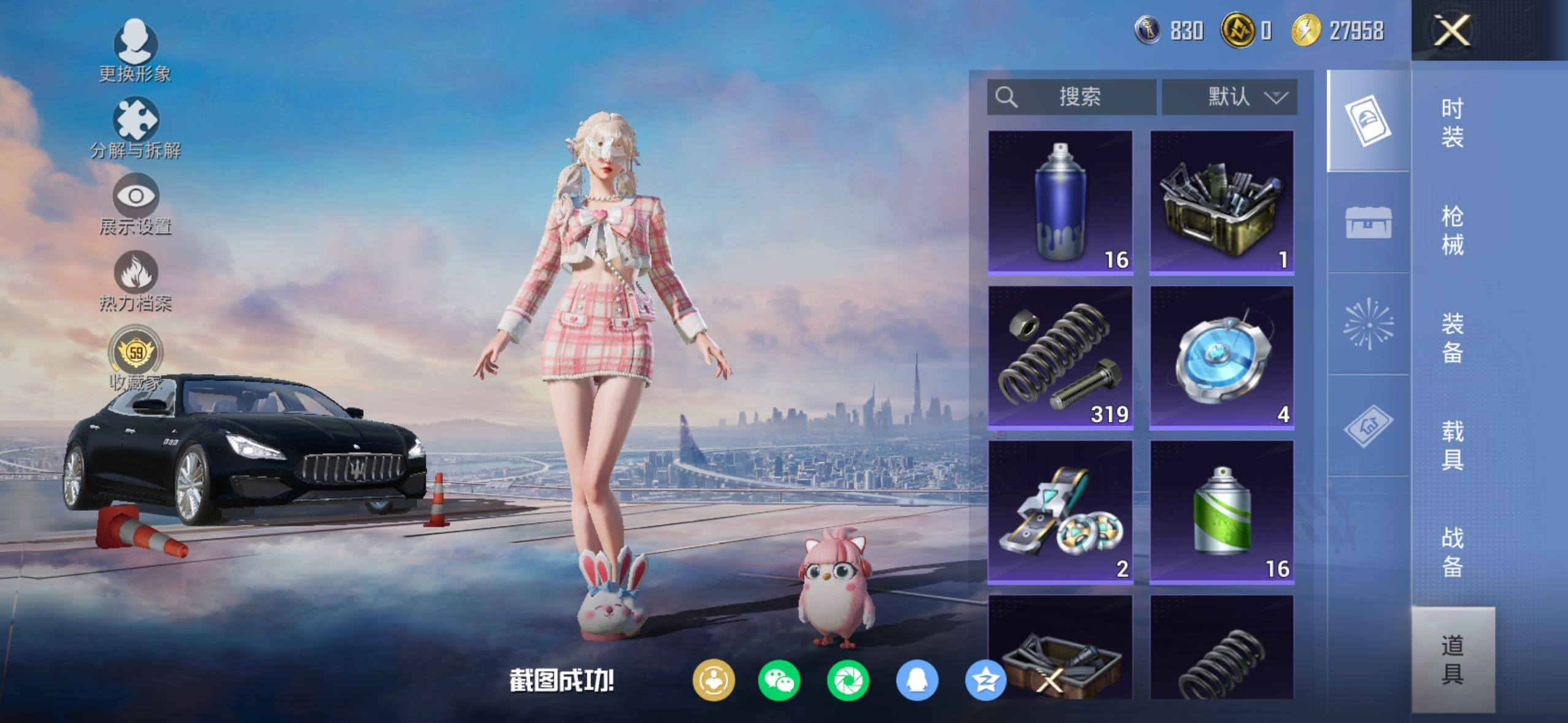苹果 手Q-5粉装-5特效枪-1载具-2粉色飞行器-54005热力值-11王牌